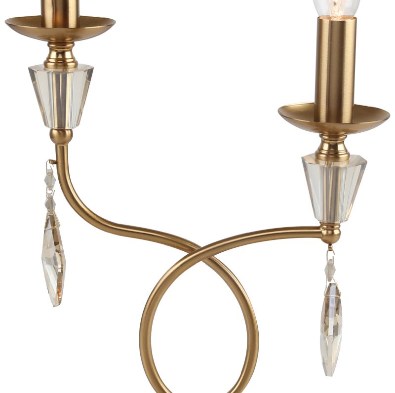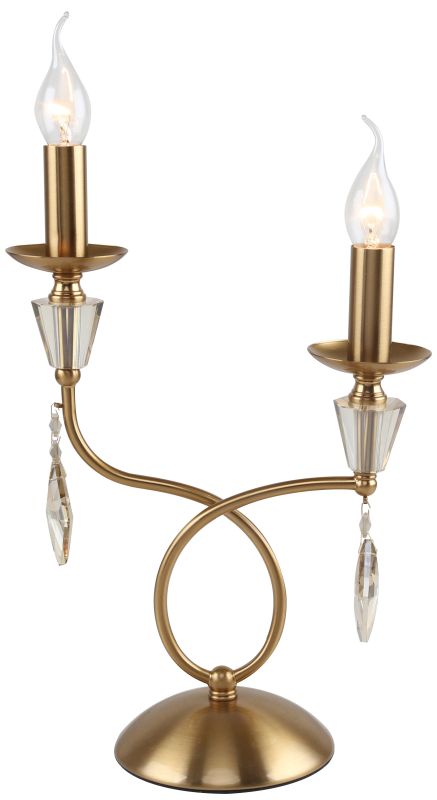 Светильник настольный из коллекции Grace выполнен из металла, гальванизированного в цвет бронзы, и декорирована массивами хрусталя и хрустальными подвесками в форме ромба цвета шампань.