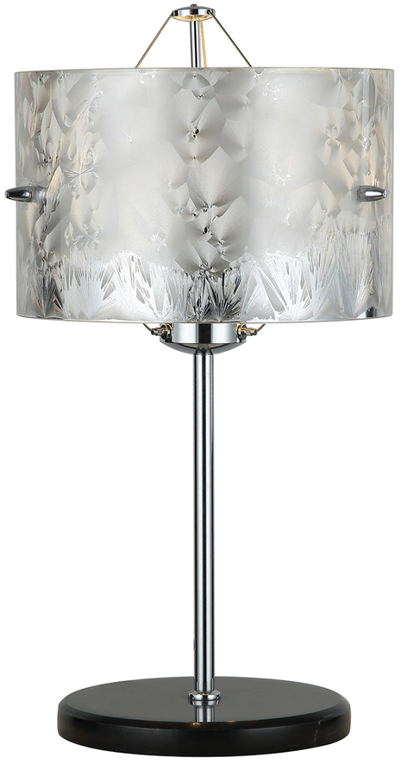 Светильник настольный из коллекции POSHER выполнен из металла, гальванизированного в цвет хрома, и декорирован стеклянным плафоном, окрашенным в серебряный цвет. Индивидуальный рисунок ручной работы на каждом плафоне, имитирующий узоры инея, придаёт коллекции эксклюзивность. Премиальное качество и неповторимыи? дизаи?н светильников идеально подои?дут в современные и дизайнерские интерьеры.