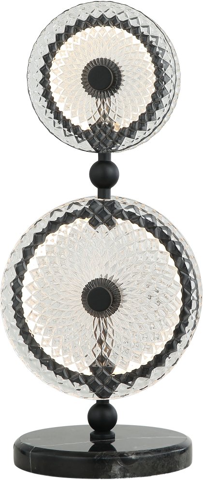 Настольный светильник эксклюзивной коллекции Sportu выполнен из металла и сплава алюминия черного цвета. Прозрачные плафоны имеют двойные стекла и текстурный рисунок. Особенностью данной коллекции является возможность поворачивать плафоны в зависимости от ваших предпочтений. Светильник комплектуется драйвером высокого качества европейского стандарта T?V. Данная серия идеально сочетается с серией PORTU. Премиальное качество и неповторимый дизайн светильника идеально подойдут как в классические, так и современные интерьеры.