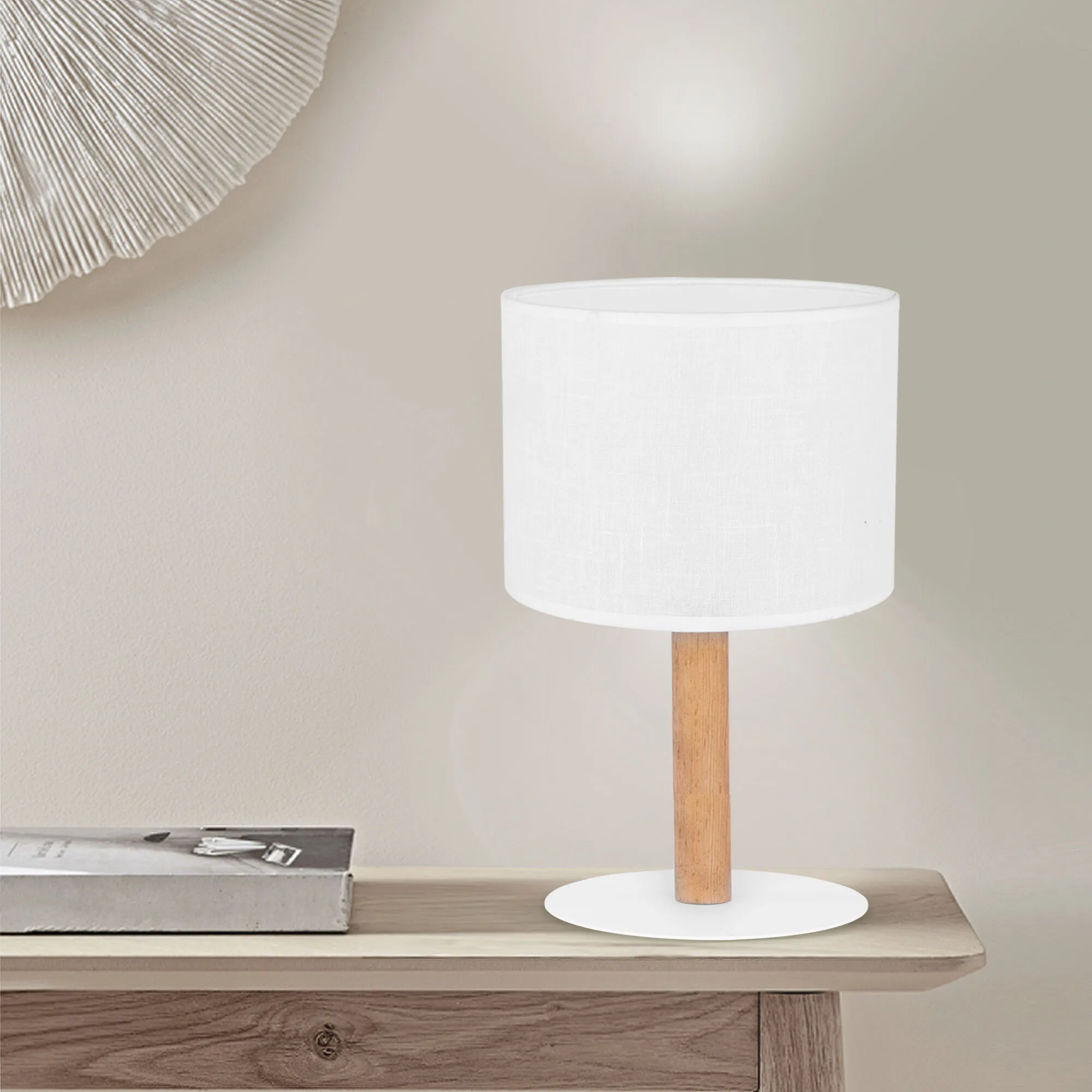 Благодаря белому тканевому абажуру настольная лампа создает мягкое рассеянное свечение, подходящее для комфортного чтения книг в вечернее время. Прочный деревянный корпус светильника устойчив к механическим воздействиям, а защитное покрытие обеспечивает надежную электроизоляцию и презентабельный внешний вид.