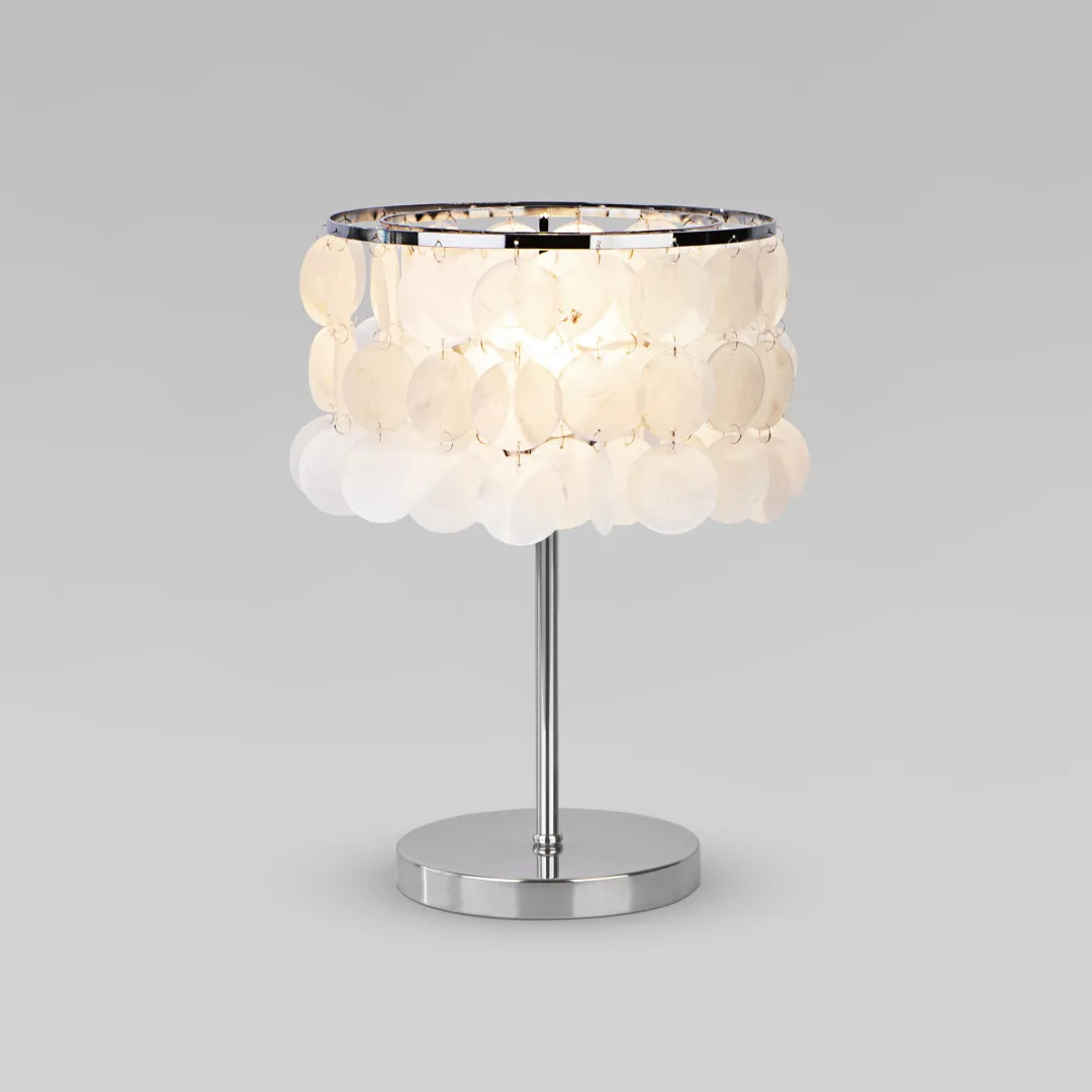 Настольный светильник с перламутром 208101 хром/перламутр является необходимым атрибутом для организации качественного освещения настольного рабочего пространства и может использоваться, как дополнительный источник света в прикроватной зоне. В светильнике используется сменная лампа E27 с рекомендованной максимальной мощностью 40 Вт.