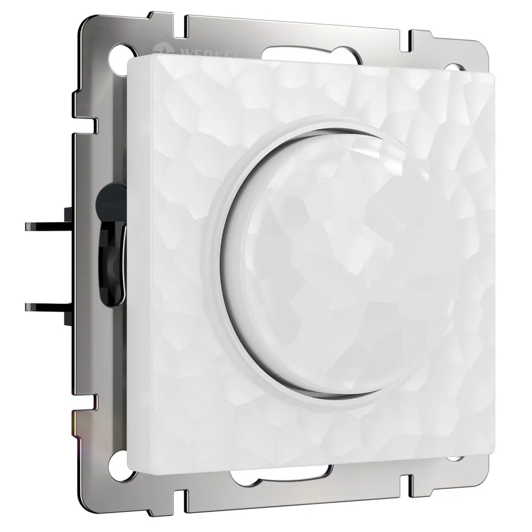 Диммер предназначен для изменения уровня яркости света. Поворотная кнопка регулирует интенсивность светового потока. Включение и выключение производится нажатием на кнопку. Диммер совместим со светодиодными диммируемыми лампами и лампами накаливания.