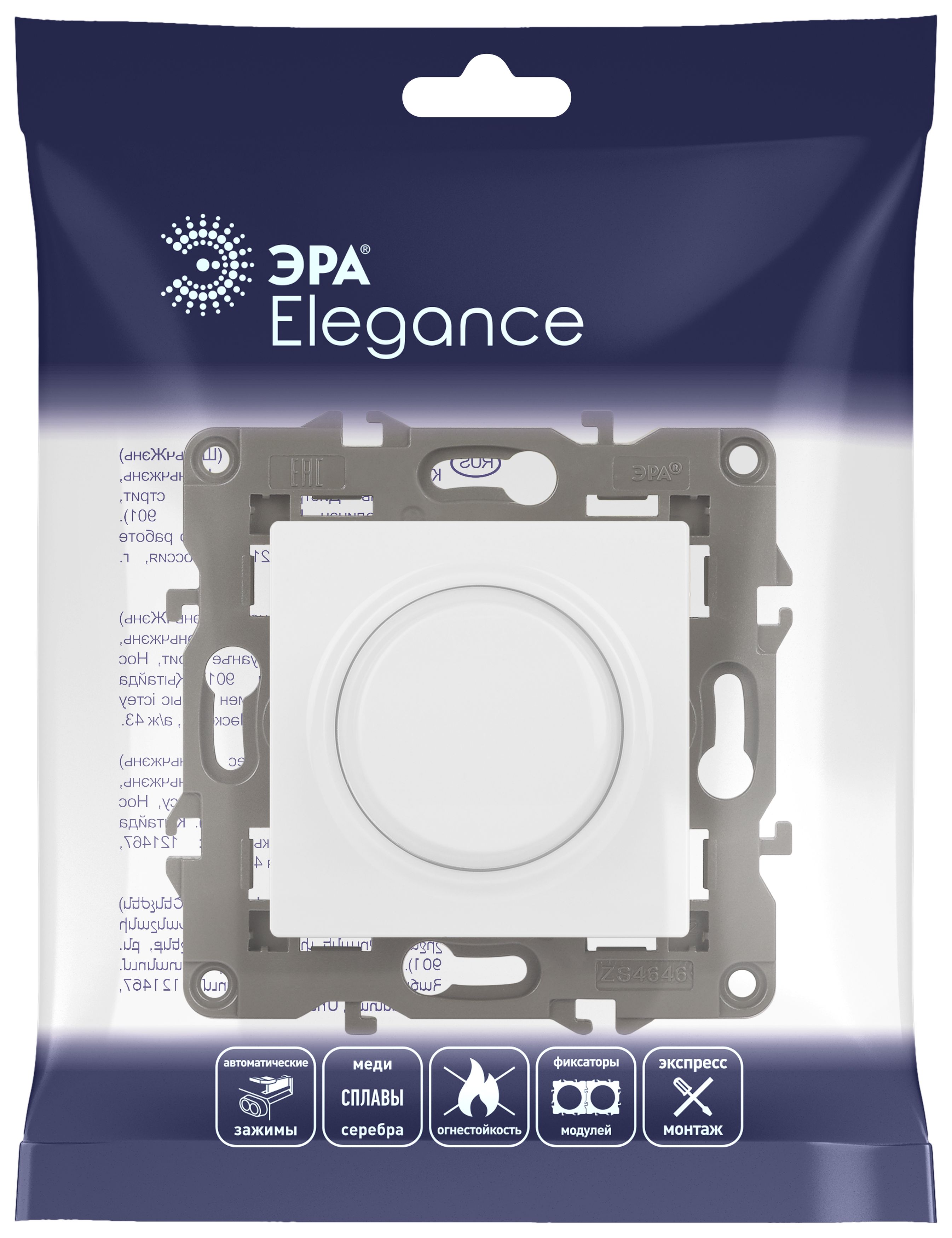 Светорегулятор поворотно-нажимной, 400ВА 230В, Эра Elegance 14-4101-01М цвет белый матовый