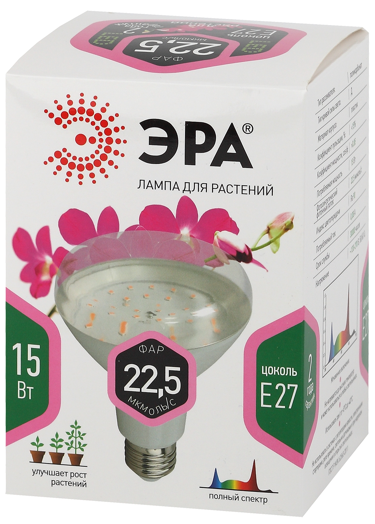 Светодиодная фито лампочка ЭРА FITO-15W-Ra90-E27 создана для выращивания растений, обеспечивает высококачественный спектр света для комнатных растений, делает ваши растения здоровыми и позволяет им быстрее расти.