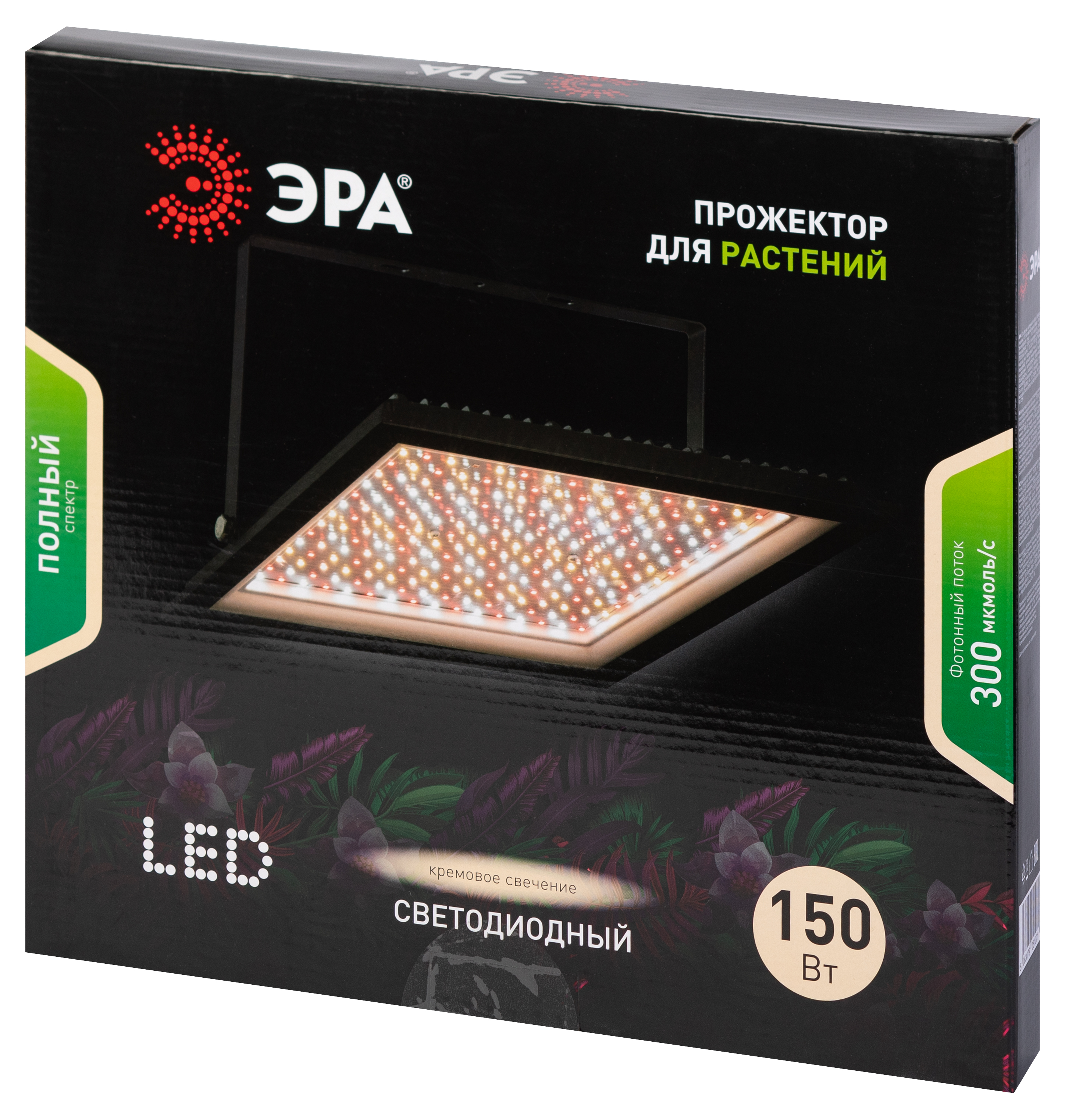 Светодиодный фитопрожектор популярной серии ЭРА «Удачный» повыщенной мощности 150 Вт. Несмотря на высокую мощность потребляет минимум электроэнергии. Светодиоды работают в дефорсированном режиме: забирают меньше энергии, дают высокую светоотдачу. Это позволяет получать отличную эффективность: 1,6 - 1,8 мкмоль / Дж.