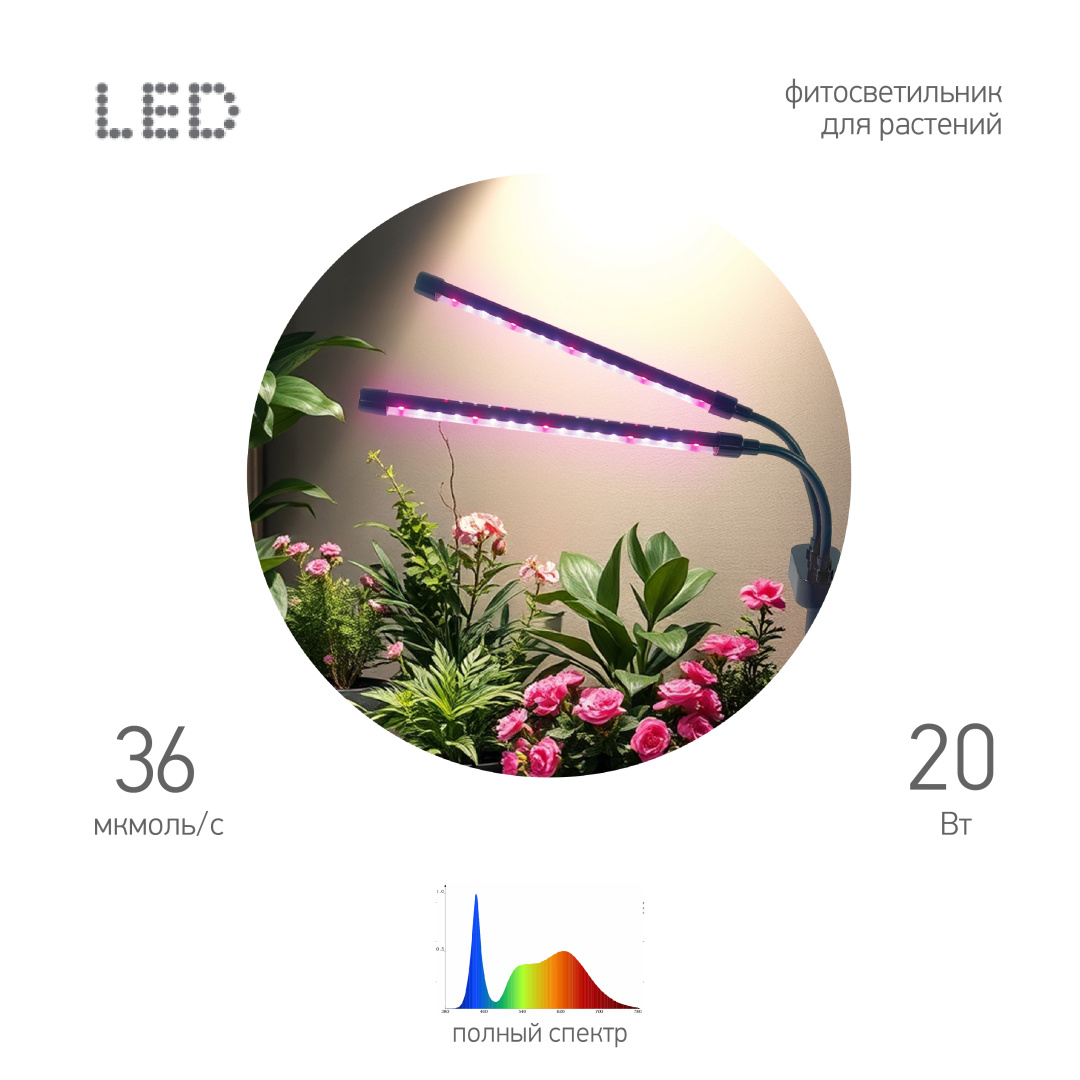 Освещайте свои растения с максимальной эффективностью с помощью светильника ЭРА FITO-20W-АLED-Ra-USB! Этот современный светильник специально разработан для поддержки роста растений, обеспечивая оптимальные условия для фотосинтеза. Это практичное приобретение пригодится тем, кто занимается выращиванием цветов и любит возиться с рассадой. Он гармонично впишется в кухню хозяйки или создаст уютную атмосферу в офисном пространстве. Тип спектра: Полный спектр, идеально подходящий для всех стадий роста растений. Защита: Уровень пыле- и влагозащиты IP54, что делает его устойчивым к воздействию пыли и брызг воды. Цвет: Черный, стильный и современный дизайн. Температура эксплуатации: От +1°C до +35°C, что позволяет использовать светильник в различных условиях. Особенности: Коэффициент мощности (PF): 0.52, обеспечивающий эффективное использование энергии. Питание: USB, что делает светильник удобным для использования в различных условиях. Светильник FITO-20W-АLED-Ra-USB — это идеальное решение для тех, кто хочет создать оптимальные условия для роста своих растений. Благодаря своей надежности и высокой эффективности, этот светильник станет незаменимым помощником в вашем доме или теплице. Новинка! Не упустите возможность приобрести этот современный светильник для растений по выгодной цене!