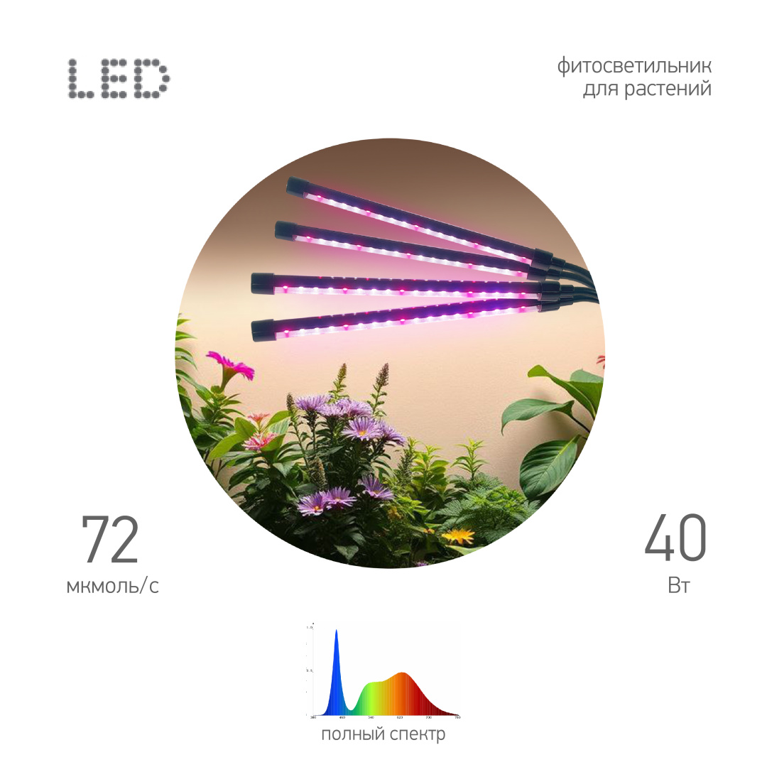 Освещайте свои растения с максимальной эффективностью с помощью светильника ЭРА FITO-40W-АLED-Ra-USB! Этот современный светильник специально разработан для поддержки роста растений, обеспечивая оптимальные условия для фотосинтеза. Это практичное приобретение пригодится тем, кто занимается выращиванием цветов и любит возиться с рассадой. Он гармонично впишется в кухню хозяйки или создаст уютную атмосферу в офисном пространстве. Тип спектра: Полный спектр, идеально подходящий для всех стадий роста растений. Защита: Уровень пыле- и влагозащиты IP54, что делает его устойчивым к воздействию пыли и брызг воды. Цвет: Черный, стильный и современный дизайн. Температура эксплуатации: От +1°C до +35°C, что позволяет использовать светильник в различных условиях. Особенности: Коэффициент мощности (PF): 0.52, обеспечивающий эффективное использование энергии. Питание: USB, что делает светильник удобным для использования в различных условиях. Светильник FITO-40W-АLED-Ra-USB— это идеальное решение для тех, кто хочет создать оптимальные условия для роста своих растений. Благодаря своей надежности и высокой эффективности, этот светильник станет незаменимым помощником в вашем доме или теплице. Новинка! Не упустите возможность приобрести этот современный светильник для растений по выгодной цене!