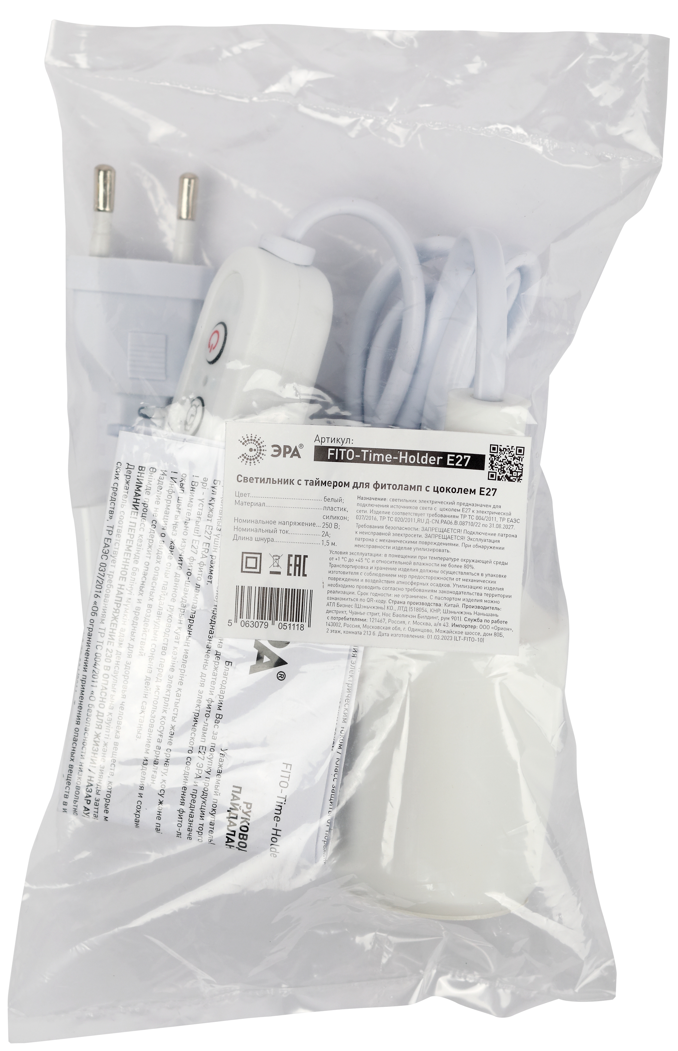 Новый светильник ЭРА FITO-Time Holder E27 с проводом длиной 1,5 м и таймером идеально подойдет для любых фитоламп ЭРА с цоколем Е27.