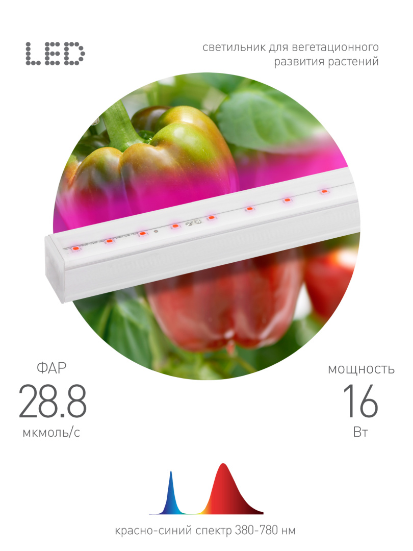 Светильник для растений ЭРА FITO-16W-Т5-N предназначен для рассады пасленовых, выращивания зелени на подоконнике и досвечивания комнатных цветов. Красно-синий спектр обеспечивает питание корней и листьев, предотвращает вытягивание. Рекомендованное расстояние размещения от 5 до 35 см. Увеличение диапазона между растениями и светильником уменьшает эффект от использования обратно пропорционально квадрату расстояния. Аккуратный и лаконичный дизайн позволит модели легко вписаться в интерьер балкона или кухни. Главные преимущества линейной фитолампы установка, которая не займет много времени, и равномерно распределенный свет. Свечение от нее совершенно безопасно для человека и животных. Корпус модели выполнен из прочного пластика. В упаковке Вы найдете провод для подключения к сети, защитный колпачок и крепления. Светодиодная лампа для растений это долговечность и экономия затрат на электроэнергию. Диоды в светильнике работают в дефорсированном режиме, что обеспечит ему долгий срок службы и хорошую светоотдачу. Создайте для любимых растений комфортные условия, а себя обеспечьте большим урожаем вместе с фитолампой ЭРА!