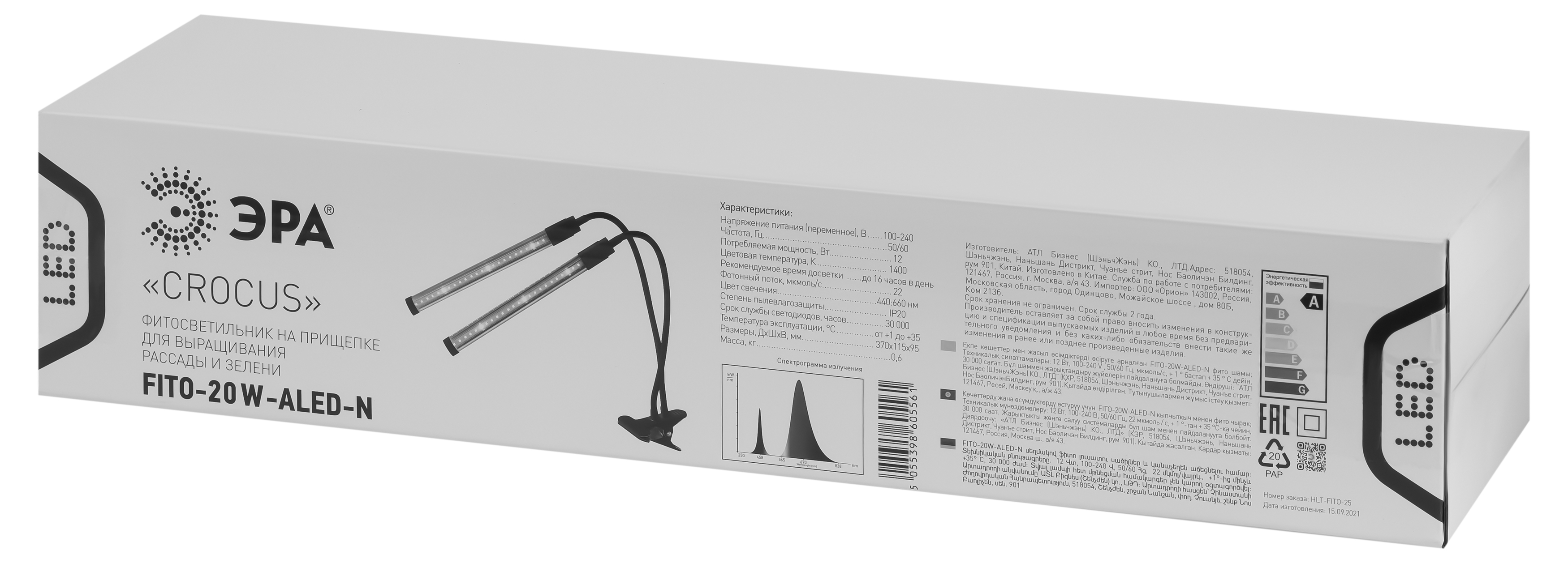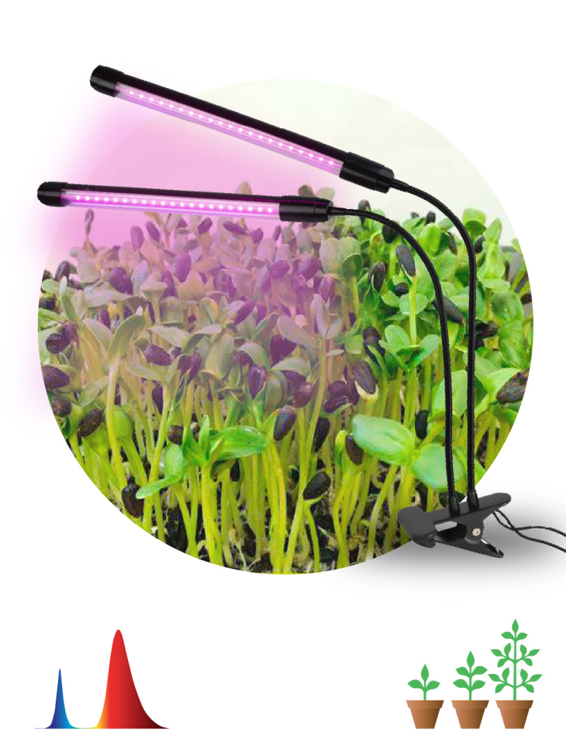 ЭРА CROCUS — удобный домашний фитосветильник на прищепке, в чёрном корпусе, с двумя LED-модулями. Можно быстро разместить в любом месте дома, просто зафиксировав прищепку на столешнице или полке. Мощность — 12 Вт. Фотонный поток — 22 мкмоль/с. Шнур — 130 см, двойной. Каждый светодиодный модуль включается и выключается отдельно.