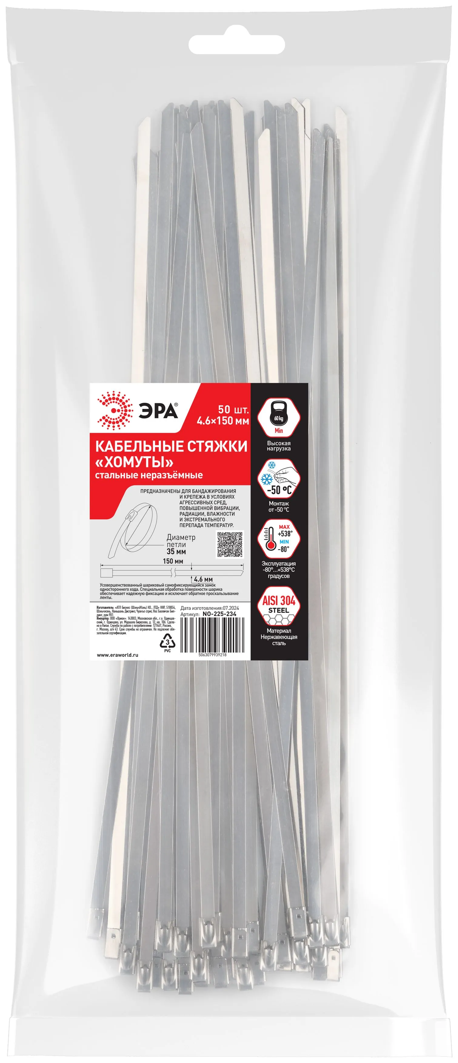 Кабельная стяжка (хомут) стальная aisi 304 эра no-225-235 4.6 x 200 мм 50 шт б0066297