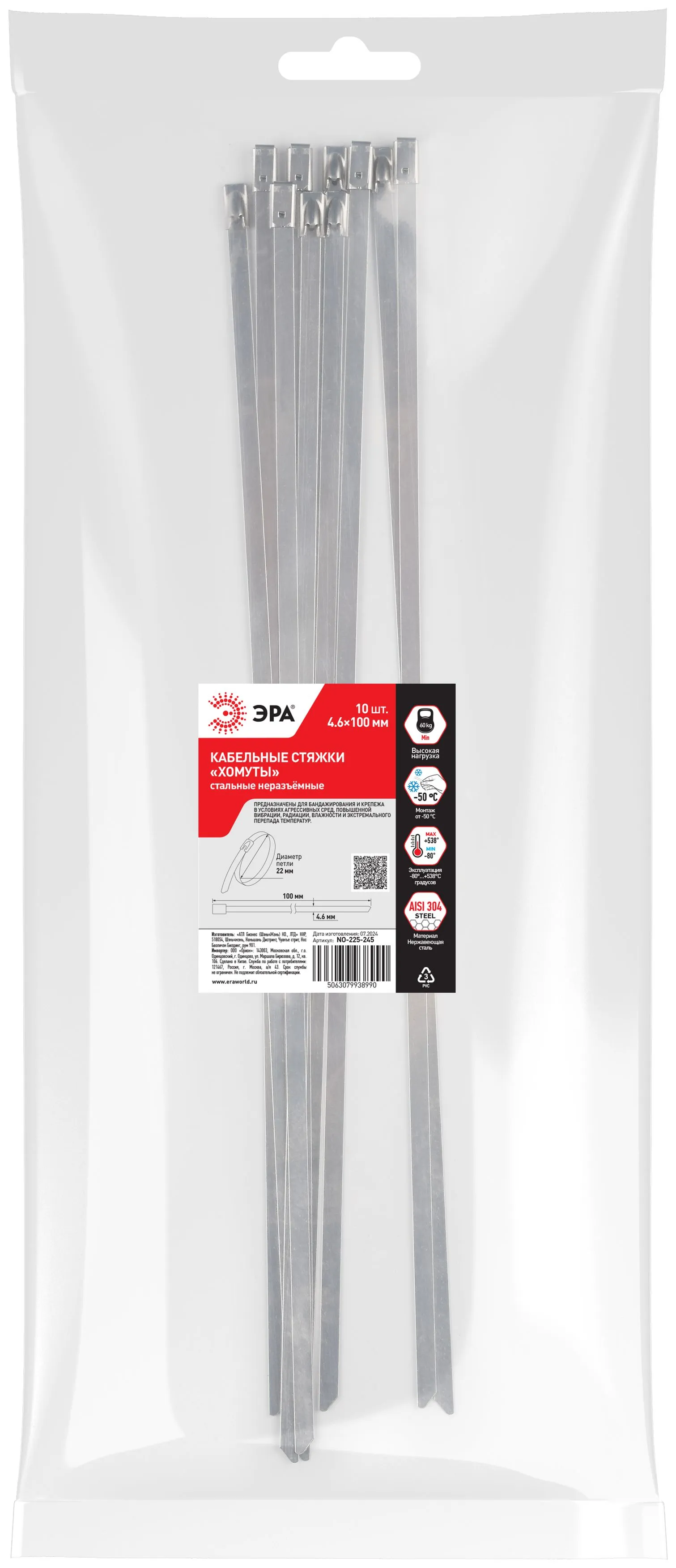 Кабельная стяжка (хомут) стальная aisi 304 эра no-225-246 4.6 x 150 мм 10 шт б0066318