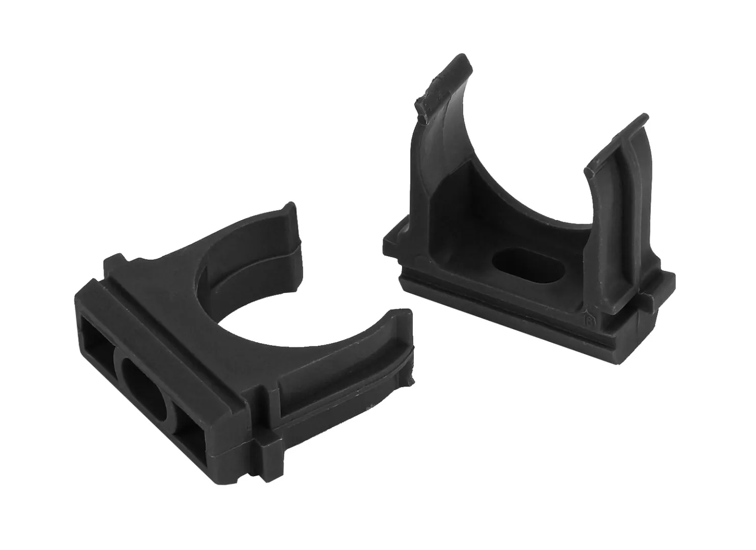 Используется для крепления гофрированных и гладких труб к поверхности стен или потолка. Для крепления к поверхности в крепёж-клипсе предусмотрено технологическое отверстие под саморез или дюбель.