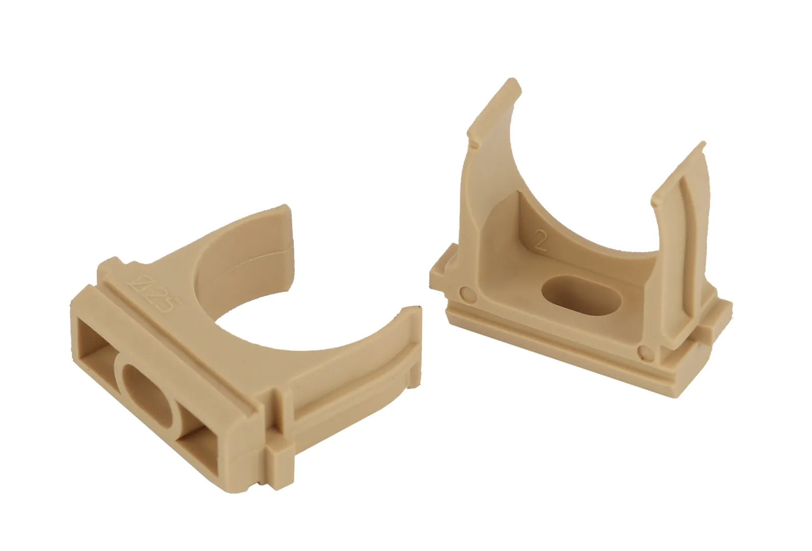 Используется для крепления гофрированных и гладких труб к поверхности стен или потолка. Для крепления к поверхности в крепёж-клипсе предусмотрено технологическое отверстие под саморез или дюбель.