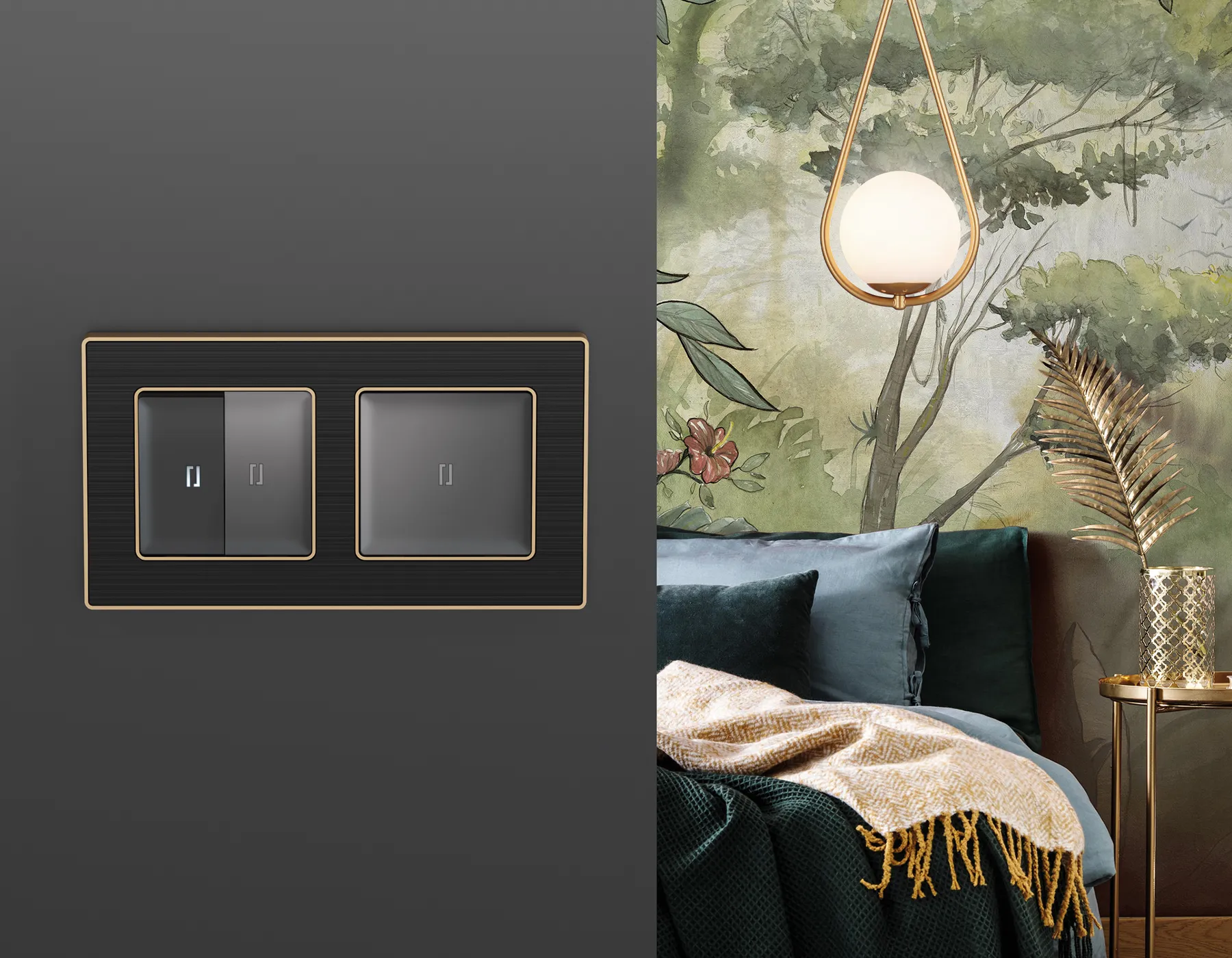 AP9105 Лицевая панель ALFA (Графит мягкое касание) для электрической розетки с/з со шторками 2USB C+C QUANT
