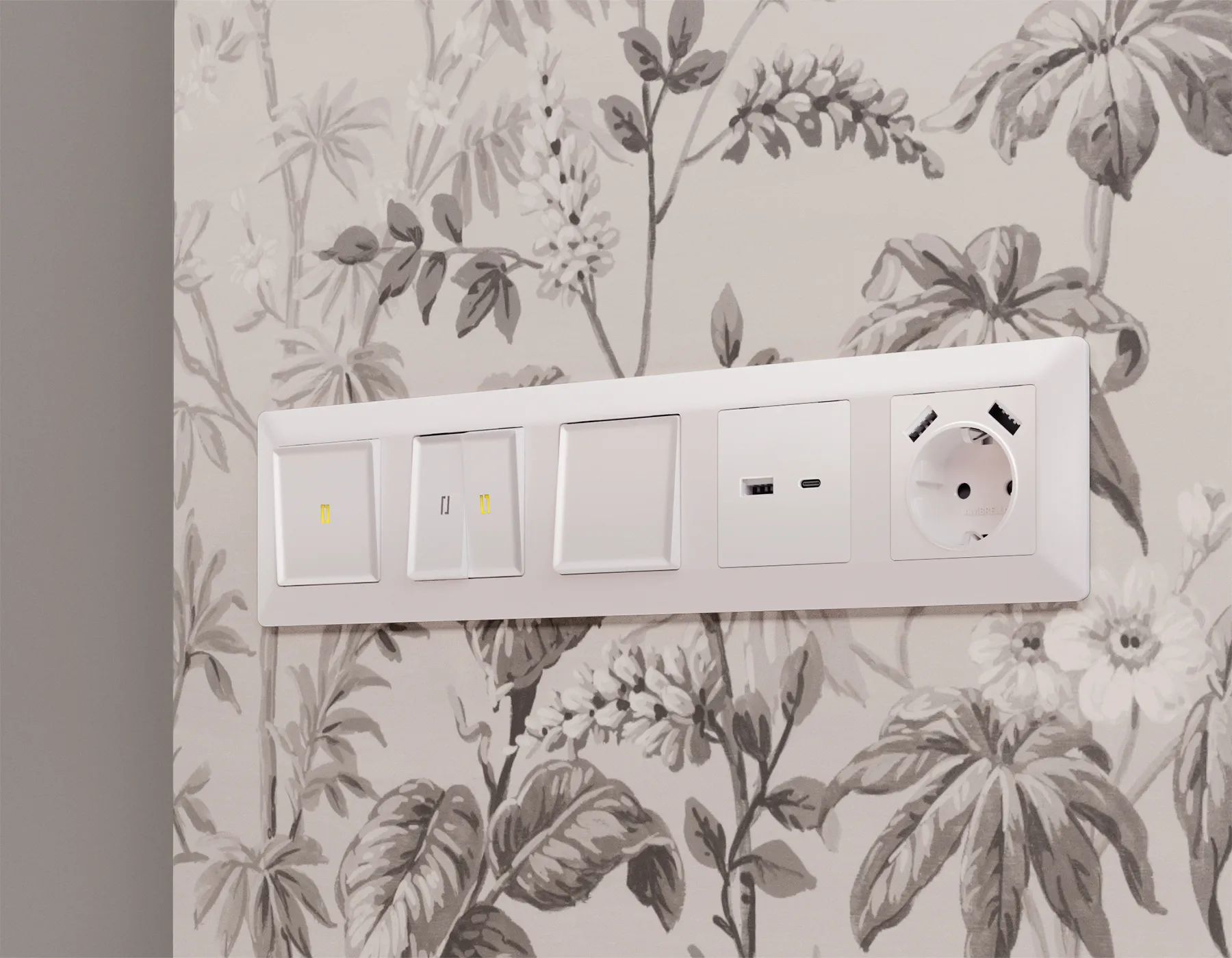 Лицевая панель ALFA для электрической розетки с заземлением со шторками 2USB тип A+A QUANTAP2090