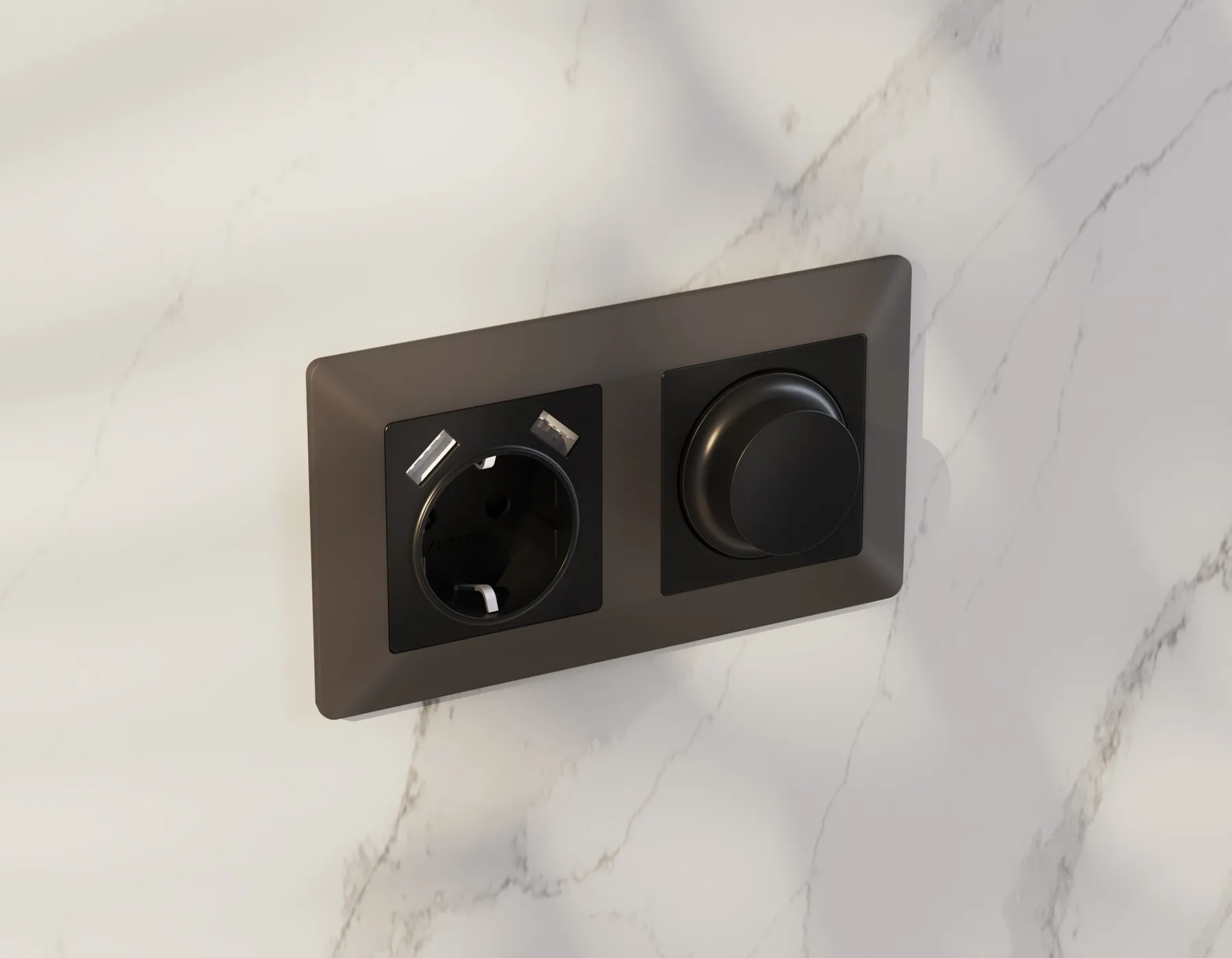 AP9105 Лицевая панель ALFA (Графит мягкое касание) для электрической розетки с/з со шторками 2USB C+C QUANT