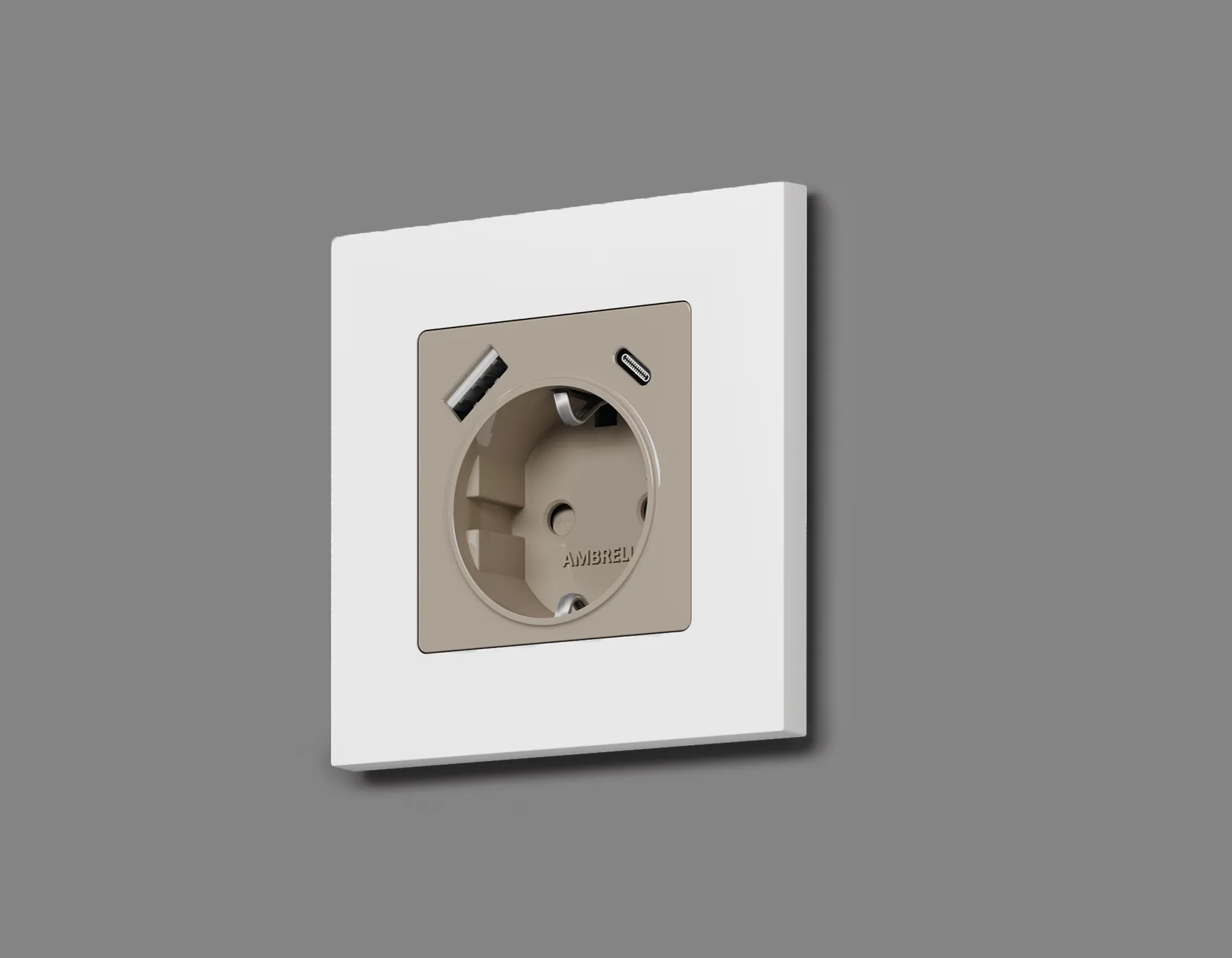 Лицевая панель ALFA для электрической розетки с заземлением со шторками 2USB тип A+C QUANTAP3700