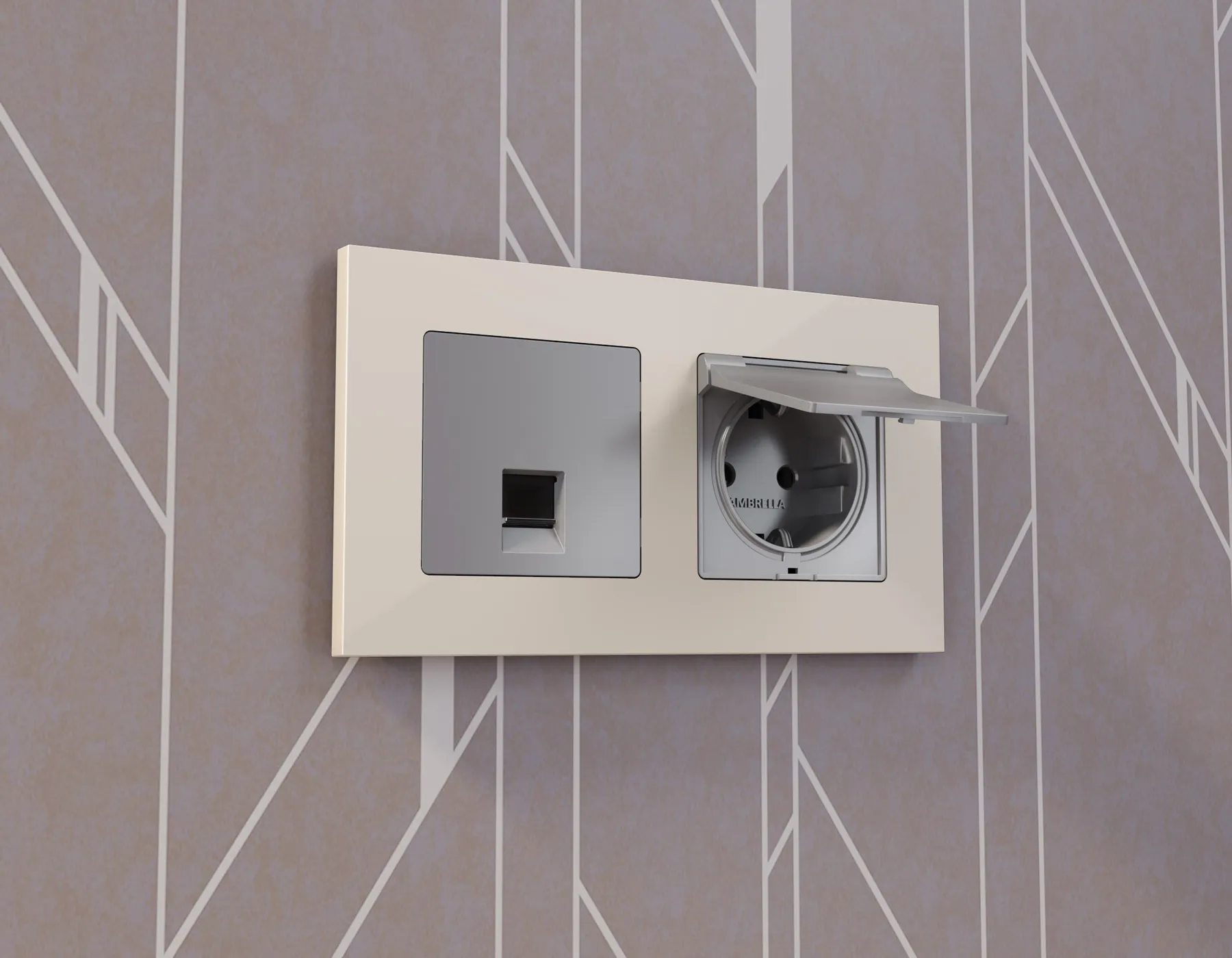 Лицевая панель ALFA для электрической розетки с заземлением со шторками и защитной крышкой IP44 QUANTAP5080