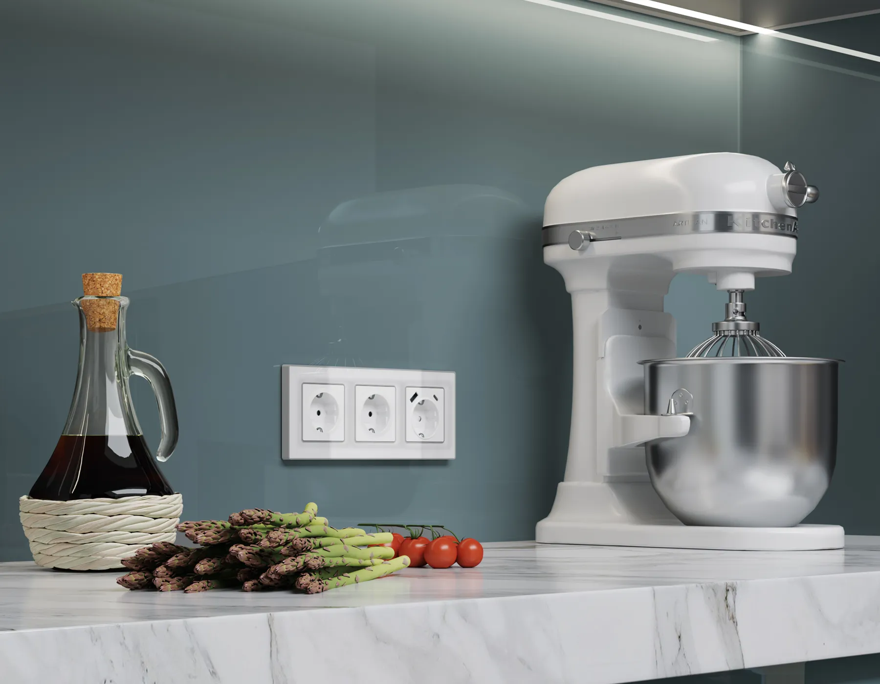 Лицевая панель ALFA для электрической розетки с заземлением со шторками QUANTAP1070