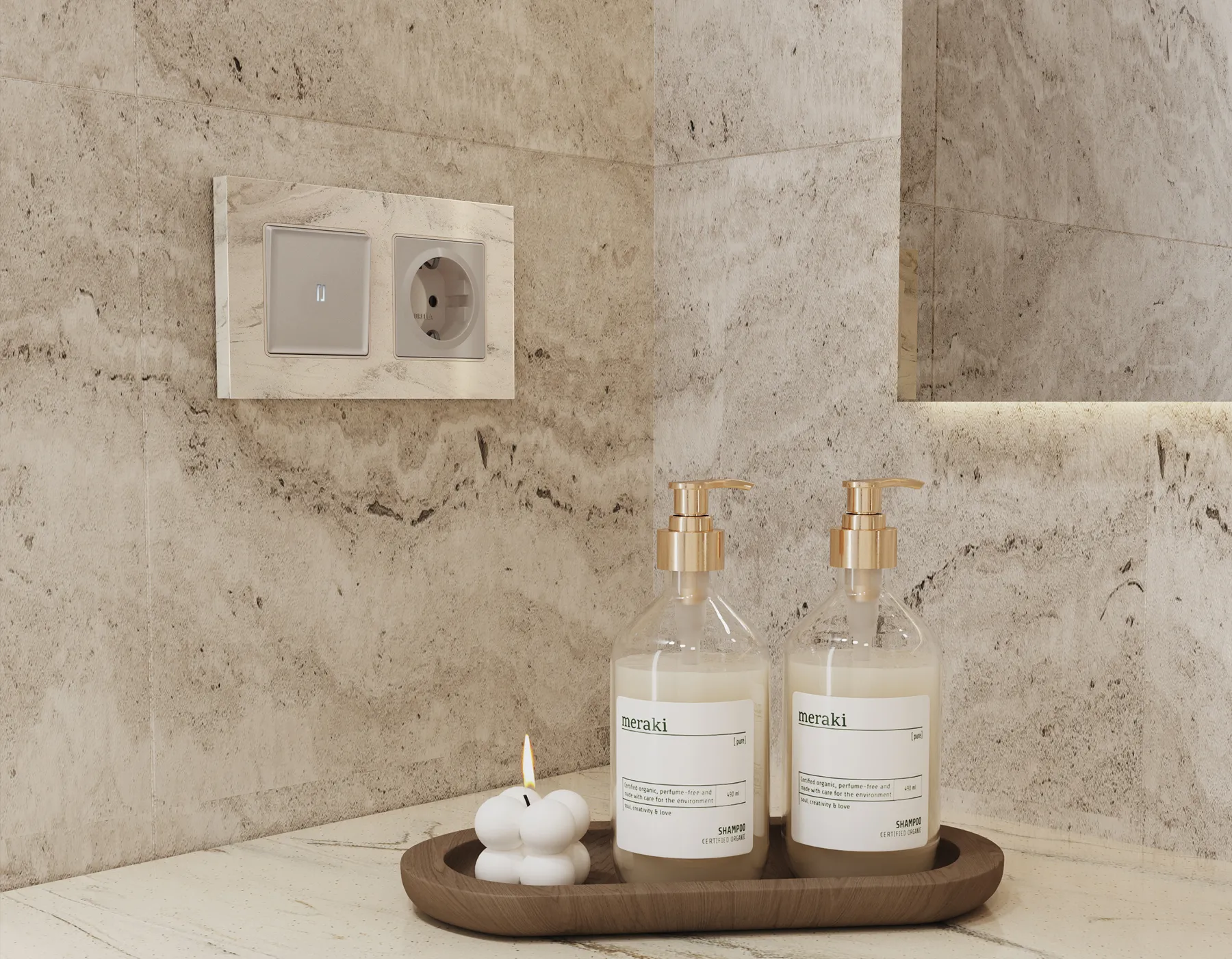 AP9105 Лицевая панель ALFA (Графит мягкое касание) для электрической розетки с/з со шторками 2USB C+C QUANT
