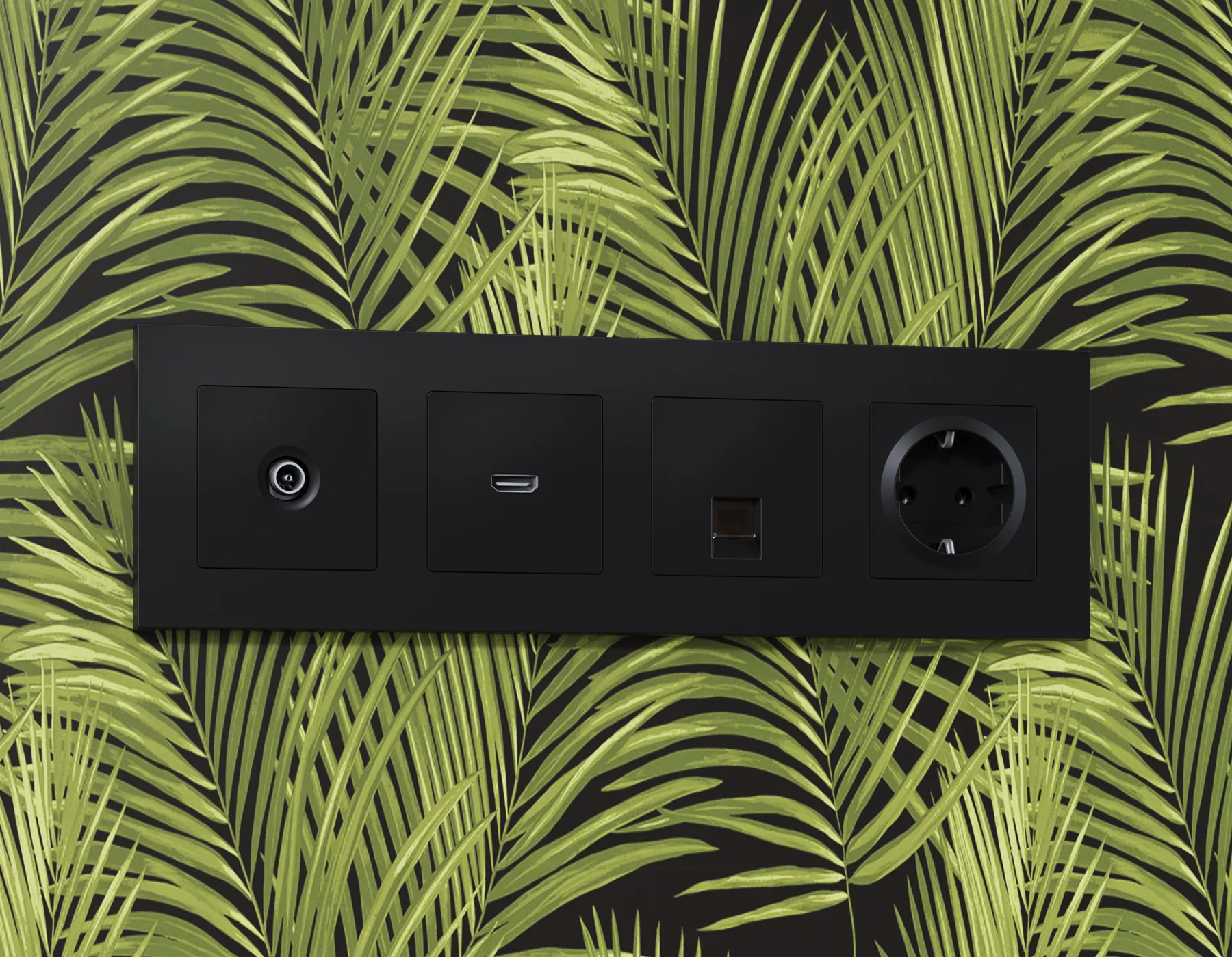 AP9121 Лицевая панель ALFA (Графит мягкое касание) для компьютерной/телефонной двойной розетки RJ-45/RJ-11 QUANT