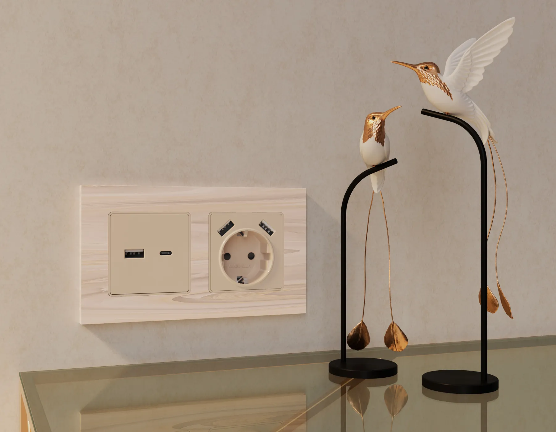 Лицевая панель ALFA для розетки 2USB тип A+C QUANTAP3310