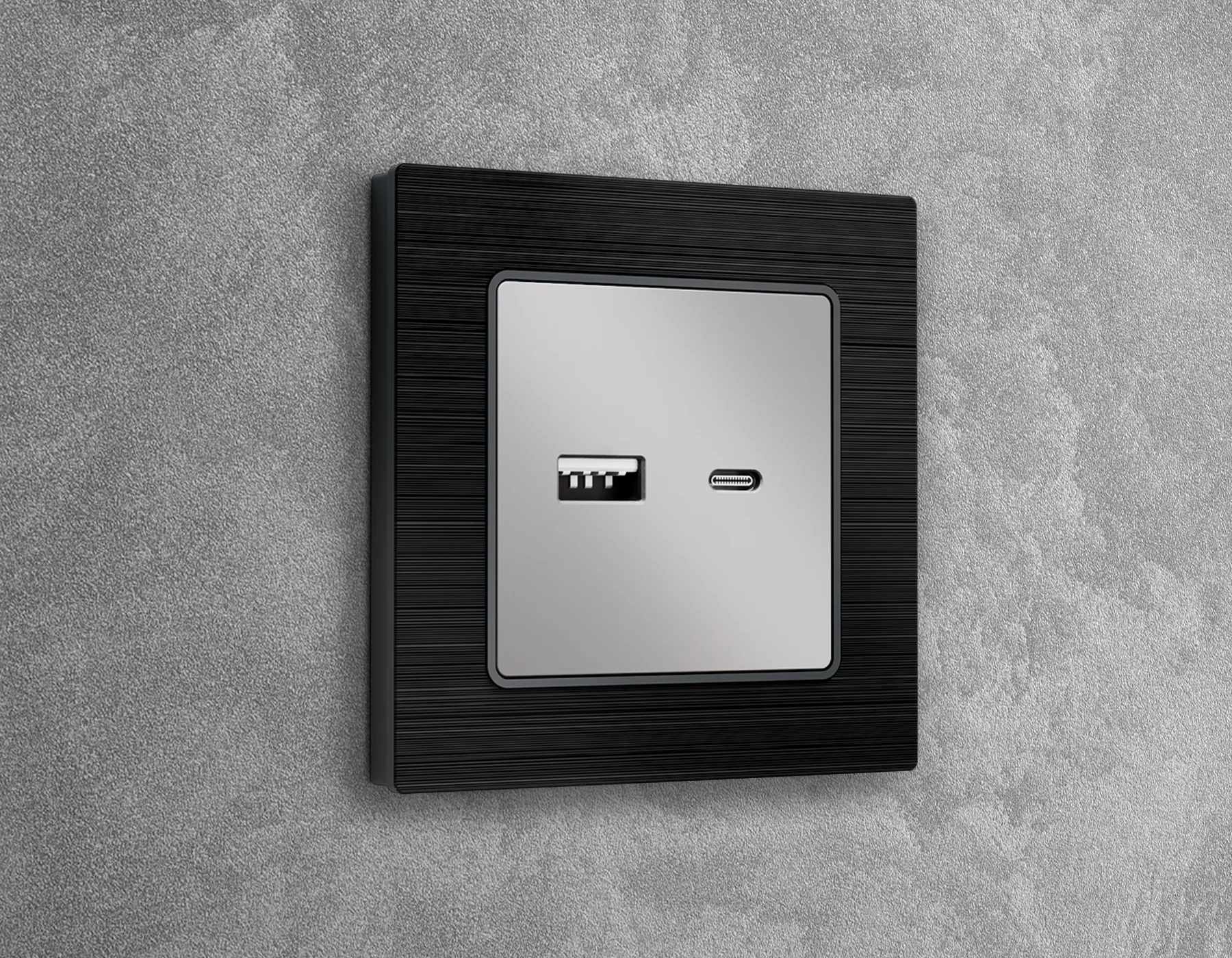 AP9105 Лицевая панель ALFA (Графит мягкое касание) для электрической розетки с/з со шторками 2USB C+C QUANT