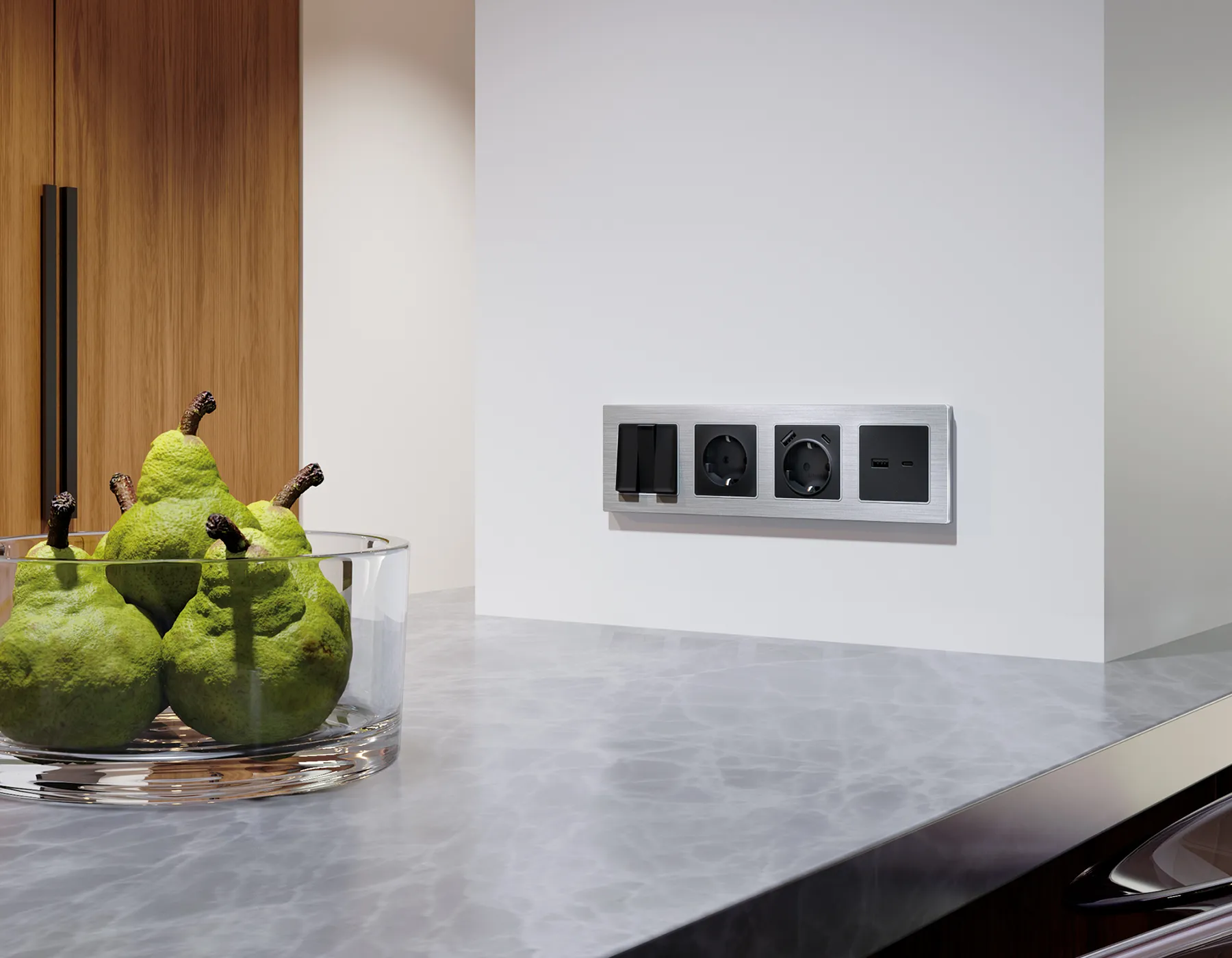 AP9105 Лицевая панель ALFA (Графит мягкое касание) для электрической розетки с/з со шторками 2USB C+C QUANT