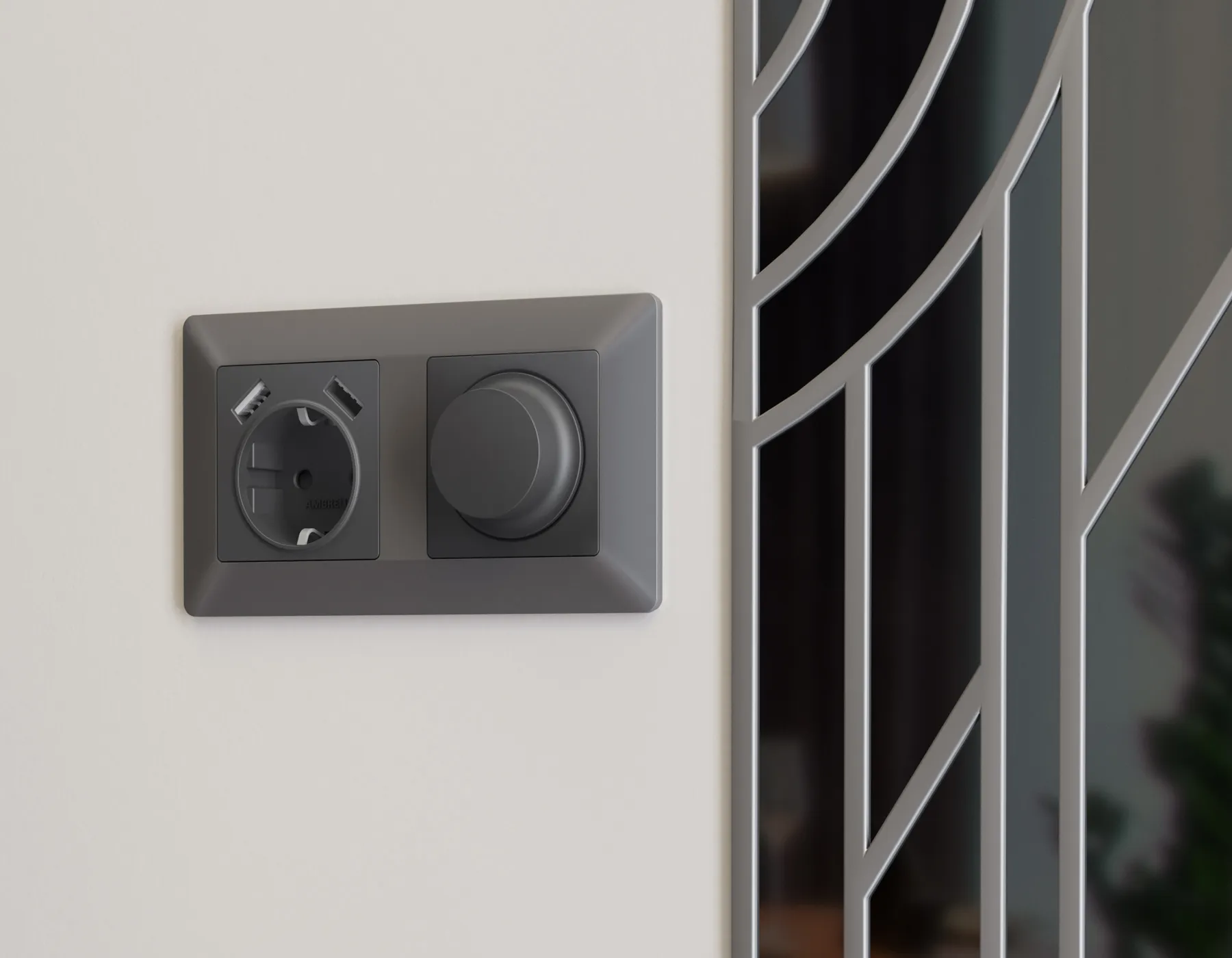 AP9105 Лицевая панель ALFA (Графит мягкое касание) для электрической розетки с/з со шторками 2USB C+C QUANT