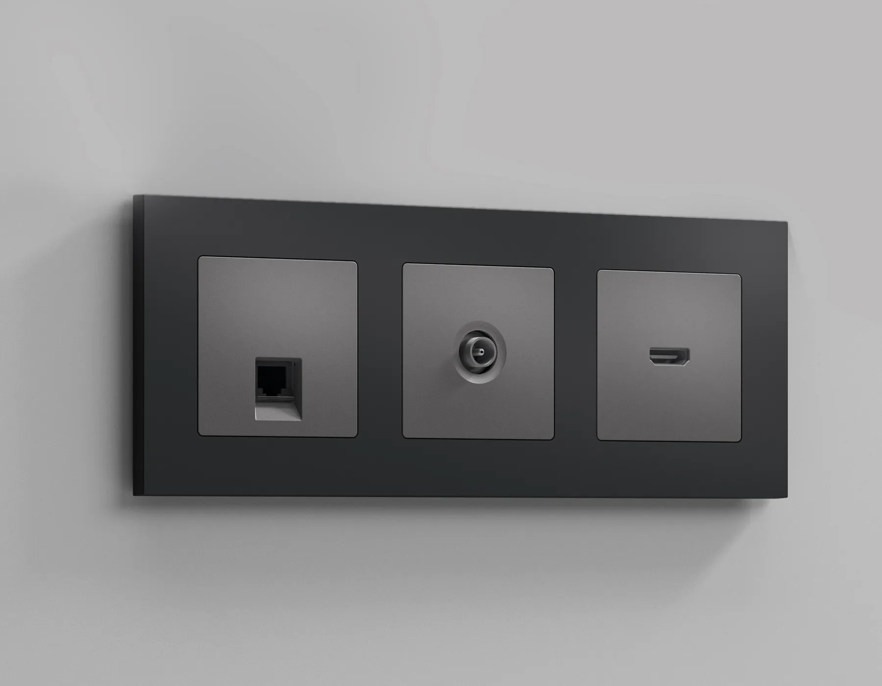 AP9125 Лицевая панель ALFA (Графит мягкое касание) для компьютерной/телефонной + TV розетки RJ-45/RJ-11 QUANT