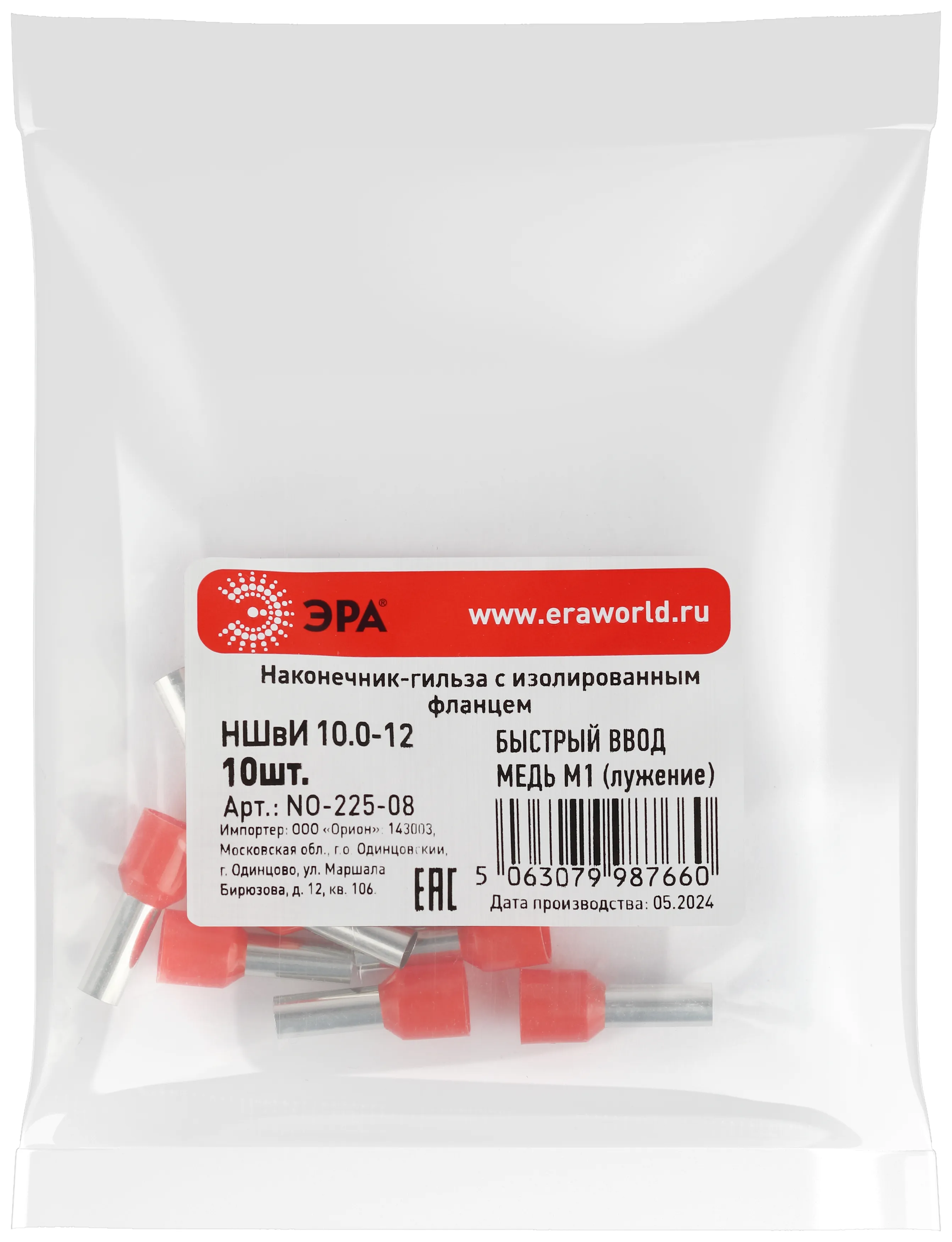 Наконечники-гильзы НШвИ состоят из медной луженой гильзы, один конец которой развальцован для облегчения ввода многожильного провода и изолирующей манжеты из полипропилена. Предназначены для оконцевания гибких многопроволочных медных проводников методом опрессовки для последующей фиксации в клемме или нулевой шине. Заменяют обязательный процесс облуживания многопроволочных медных проводов (типа ПВ-3, ПВС и т. п.). Применяются при сборке и монтаже электрощитового оборудования, щитов управления, квартирных или офисных распределительных щитков, при подключении к нулевым шинам. Особенности конструкции: • Коническая форма внутренней части манжеты облегчает заведение гибкого многопроволочного проводника в наконечник, т.к. изготовлена по технологии «Easy-Entry»/«Быстрый ввод». • Изолирующая манжета служит ограничителем и одновременно дополнительно фиксирует провод по изоляции, предотвращая его излом. • Цветовая маркировка изолирующих манжет выполнена в соответствии с DIN 46228 часть 4, позволяет быстро подобрать нужный размер наконечника под сечение проводника. • Материал гильзы: медь марки М1, покрытая электролитическим лужением. • Материал манжеты: полипропилен с добавлением антипиренов, не поддерживающий горение.