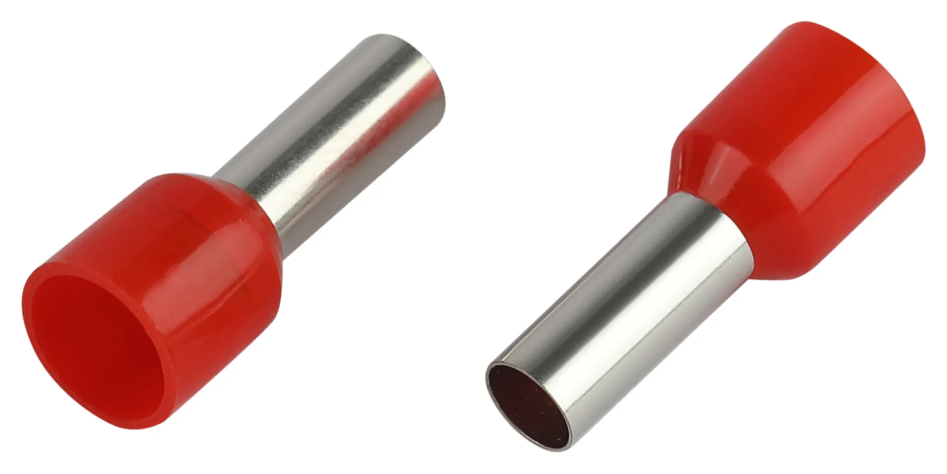 Наконечники-гильзы НШвИ состоят из медной луженой гильзы, один конец которой развальцован для облегчения ввода многожильного провода и изолирующей манжеты из полипропилена. Предназначены для оконцевания гибких многопроволочных медных проводников методом опрессовки для последующей фиксации в клемме или нулевой шине. Заменяют обязательный процесс облуживания многопроволочных медных проводов (типа ПВ-3, ПВС и т. п.). Применяются при сборке и монтаже электрощитового оборудования, щитов управления, квартирных или офисных распределительных щитков, при подключении к нулевым шинам. Особенности конструкции: • Коническая форма внутренней части манжеты облегчает заведение гибкого многопроволочного проводника в наконечник, т.к. изготовлена по технологии «Easy-Entry»/«Быстрый ввод». • Изолирующая манжета служит ограничителем и одновременно дополнительно фиксирует провод по изоляции, предотвращая его излом. • Цветовая маркировка изолирующих манжет выполнена в соответствии с DIN 46228 часть 4, позволяет быстро подобрать нужный размер наконечника под сечение проводника. • Материал гильзы: медь марки М1, покрытая электролитическим лужением. • Материал манжеты: полипропилен с добавлением антипиренов, не поддерживающий горение.