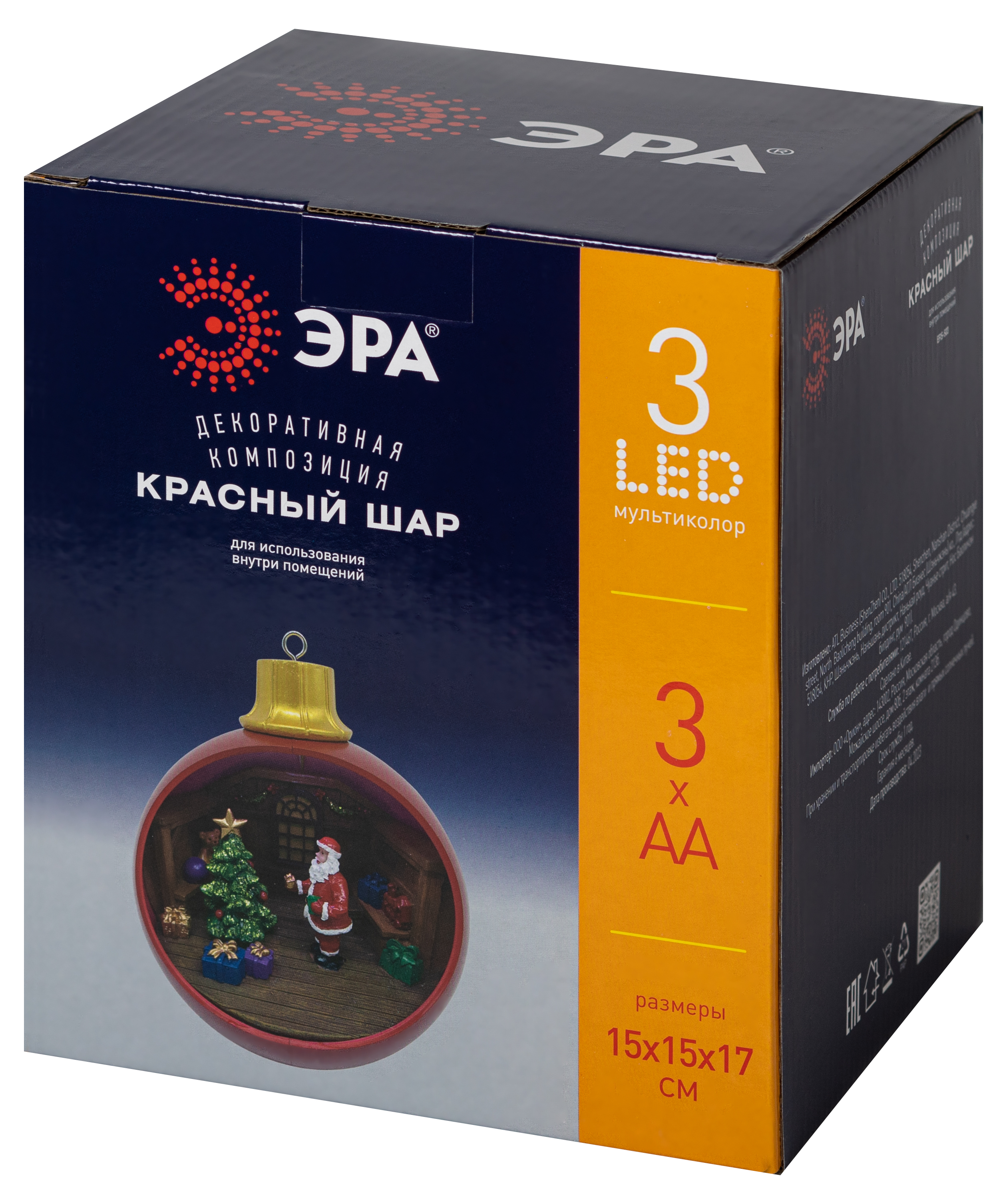 Светодиодная новогодняя фигура ЭРА EFIS-S03 композиция Шар красный мультиколор 3*АА 15*15*17 см