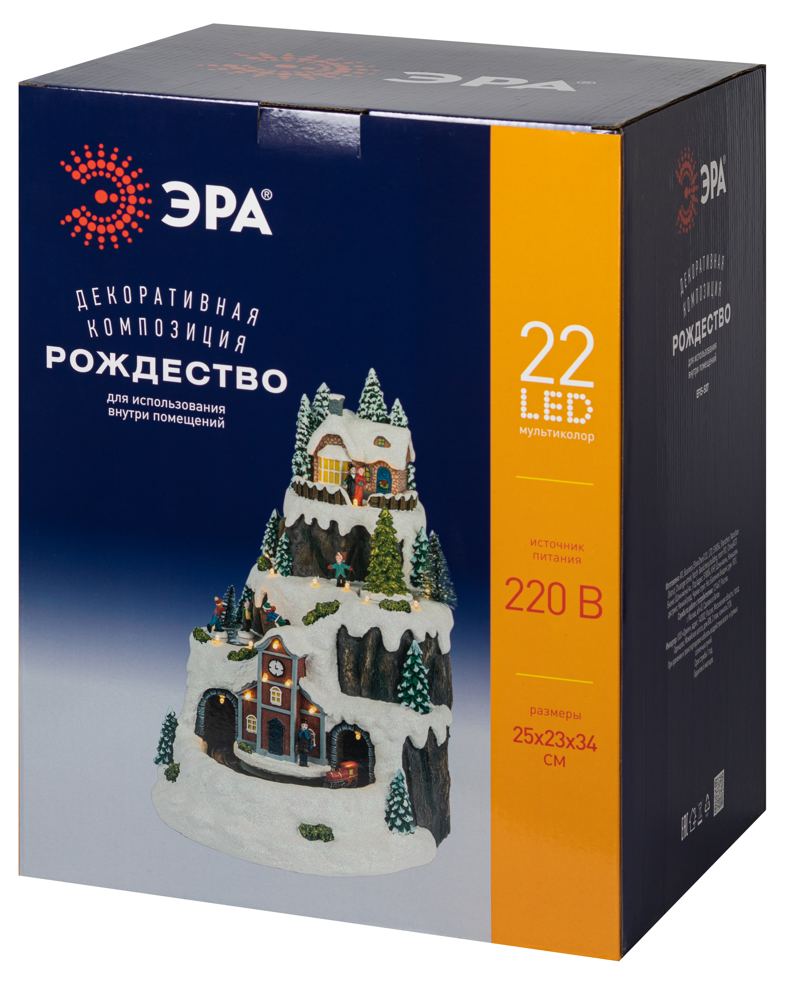 Светодиодная новогодняя фигура ЭРА EFIS-S07 композиция Рождество музыка теплый белый свет 3*АА 25*23*34 см