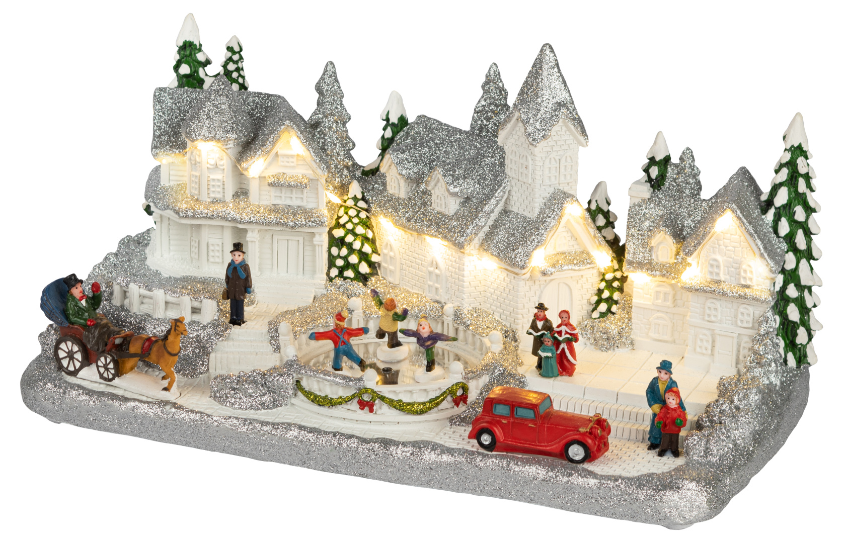 Светодиодная новогодняя фигура ЭРА EFIS-S08 композиция Снежная деревня теплый белый свет 3АА 31*16*16 см