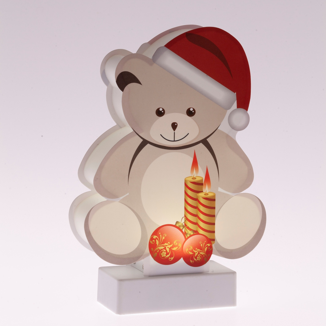 Фигура светодиодная новогодняя ЭРА EGNDS-07 "Мишка" (арт. Б0051931) высотой 24 см с рассеянным холодным светом подарит Вашему дому уютную атмосферу. Этот декоративный светильник украсит любую комнату, включая спальню: приглушенный свет позволяет использовать его в качестве ночника в детской. Светильник работает от 3 батареек AA и имеет класс защиты IP20 (рекомендуется использовать внутри помещений). Настольный зимний светильник в виде мишки в колпаке с новогодними шариками и свечами - это отличный подарок на Новый год и Рождество, особенно для ребенка. Такой новогодний декор для дома всегда создает чудесное праздничное настроение!