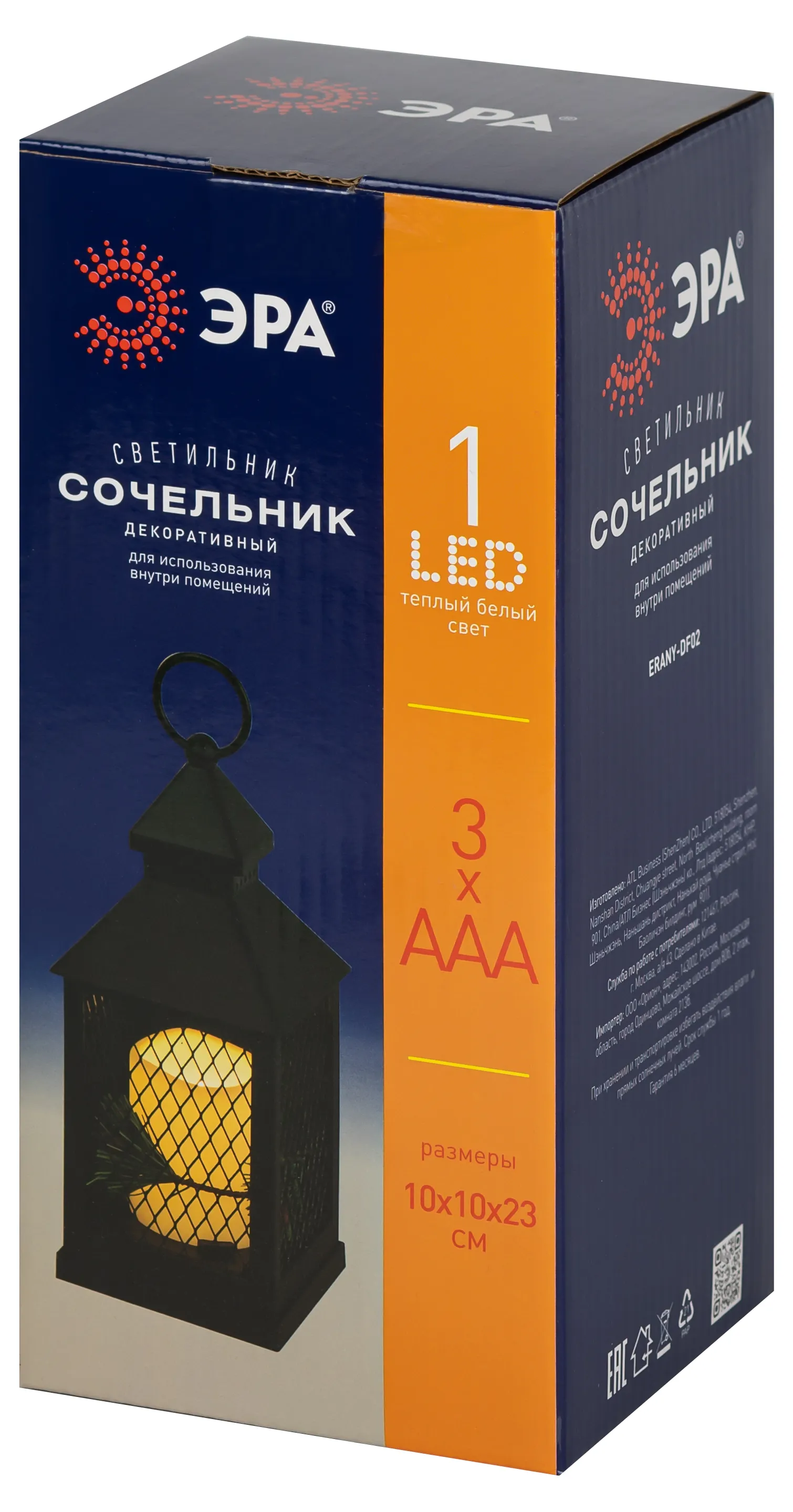 Светильник эра erany-df02 новогодний светодиодный сочельник черный 3*aаa 10*10*23 см