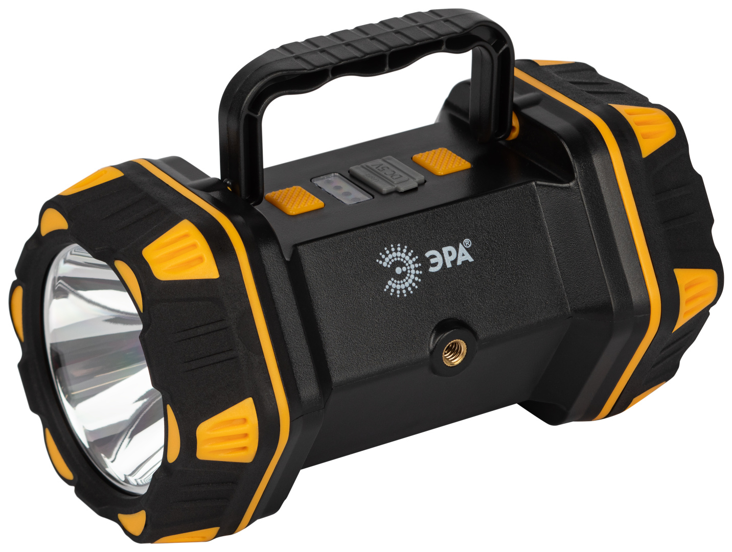 ЭРА «Практик» PA-808 – многофункциональный прожекторный фонарь с ёмким литиевым аккумулятором. Имеет множество режимов свечения: основной свет (100% яркости и 50% яркости), боковой свет (100% яркости и 50% яркости), свет с обратной стороны (100% яркости, 50% яркости, красный свет, красный мигающий). Всего – 65 светодиодов для создания яркой практичной подсветки. Этот современный фонарь имеет различные крепления и поможет организовать качественное портативное освещение в любой ситуации. Предусмотрено гнездо под штатив. Ещё одно преимущество – возможность использовать фонарь ЭРА PA-808 в качестве пауэрбанка для оперативной подзарядки мобильных устройств. Сам фонарь удобно заряжается при помощи кабеля microUSB и непрерывно светит от одного полного заряда до 15 часов. Имеется индикатор заряда