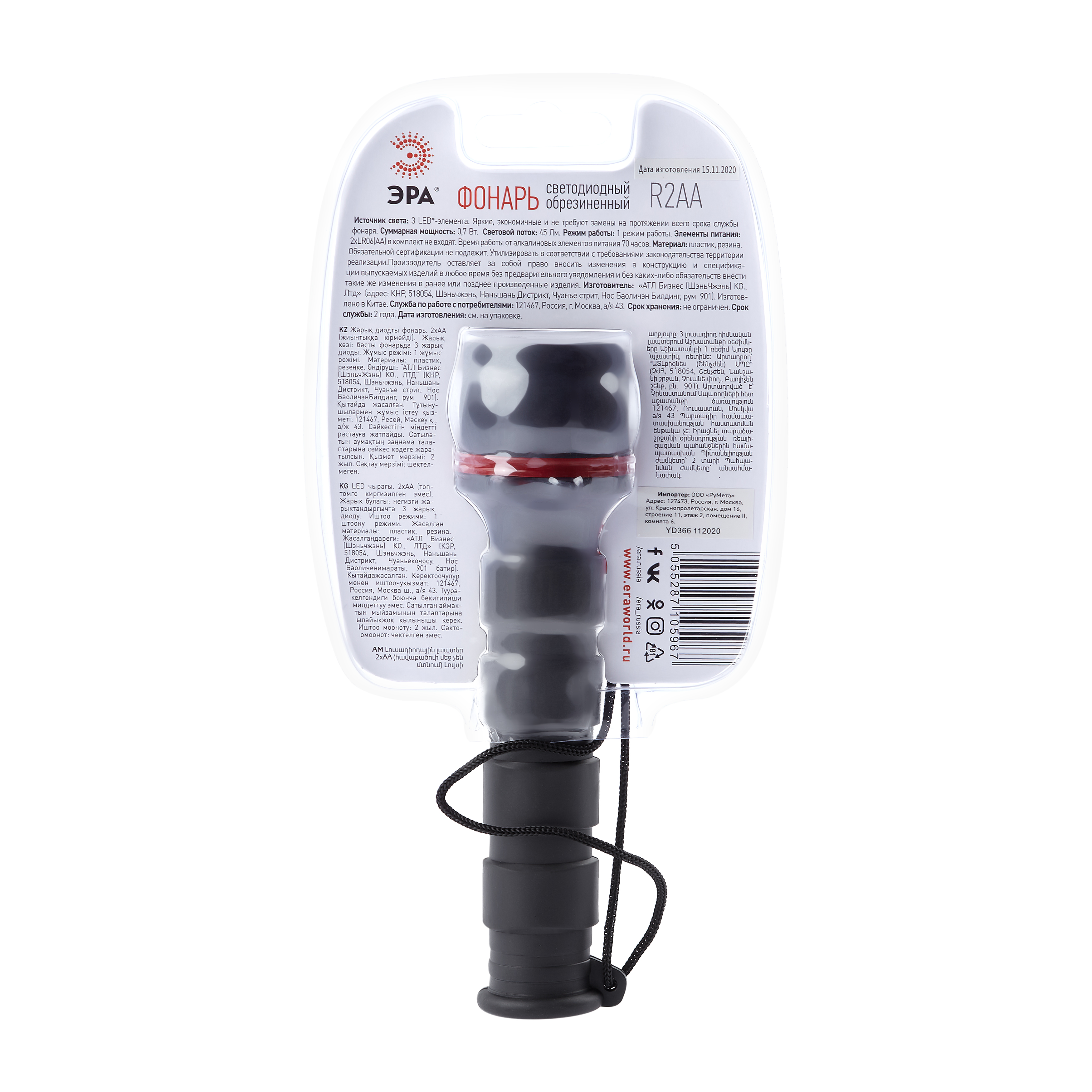 Универсальный светодиодный фонарь R2AA практичный и надёжный инструмент для ежедневного использования. Фонарь очень простой, без лишних опций, но зато безукоризненно выполняет свою главную и единственную функцию - обеспечивать дополнительным ярким источником света. В фонаре продумана каждая деталь, от эргономики ручки до качества светодиодов.Фонарь выполнен из резины, это делает корпус защищённым от случайных падений и царапин. Также резина защищает от попадания влаги внутрь корпуса, например, во время дождя. На самой ручке предусмотрены противоскользящие насечки. Фонарь крепко и удобно лежит в руке, дополнительно можно зафиксировать ремешком на запястье. Фонарь оснащён тремя светодиодами, которые светят ровным и ярким белым светом, без отлива в синеву. Дальность луча составляет 25 метров, мощность - 0,7 Вт. Этого вполне достаточно для подсветки тёмной дороги, для рыбалки или похода, а также для дополнительного освещения в городских условиях, в квартире или гараже. Фонарь питается от двух батареек.
