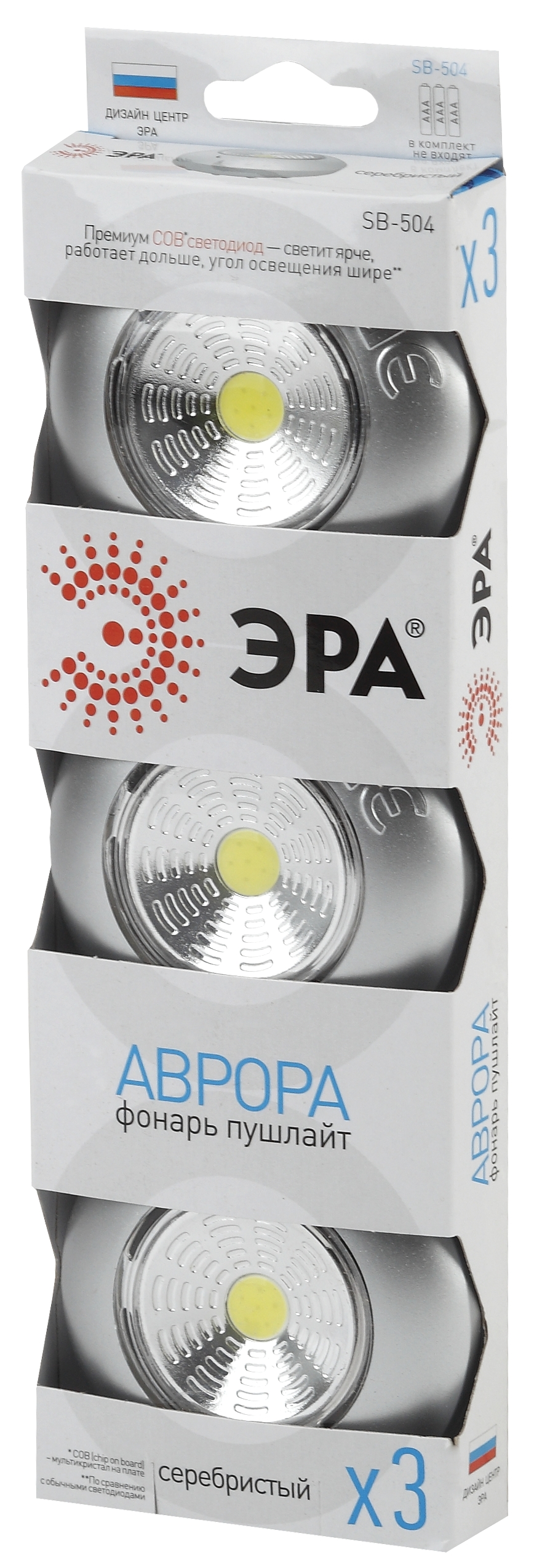Фонарь пушлайт "Аврора" удобный инструмент для аварийного или интерьерного освещения. Фонарь светит ярким белым светом, оснащён 4 светодиодами последнего поколения. Такие светодиоды не тускнеют со временем и не требуют замены. Экологичный ударопрочный пластик выполнен в спокойных классических цветах, которые впишутся в любой интерьер.Пушлайт включается по требованию, одним нажатием руки. Очень простой в использовании, достаточно убрать стикер и приклеить фонарь в нужное место, в шкаф, в кладовку, в гараж, в прихожую или в любое другое место. Фонарь работает от батареек, чтобы их сменить отклеивать фонарь не нужно, достаточно лёгким движением открутить корпус.Фонарь не требует никаких дополнительных условий, просто включите, когда необходимо освещение и всё. Дальность луча составляет 5 метров. Фонарь выполнен в серебристом цвете. Это простой многофункциональный светильник, который не требует никаких проводов или розеток. В наборе три фонаря с удобной установкой и энергосберегающей конструкцией, это действительно набор универсальных светодиодных фонарей. Фонарь может использоваться не только как подсветка или аварийный свет, но и как ночной светильник, поскольку светит ровным ярким светом с широким углом освещения длительное время.