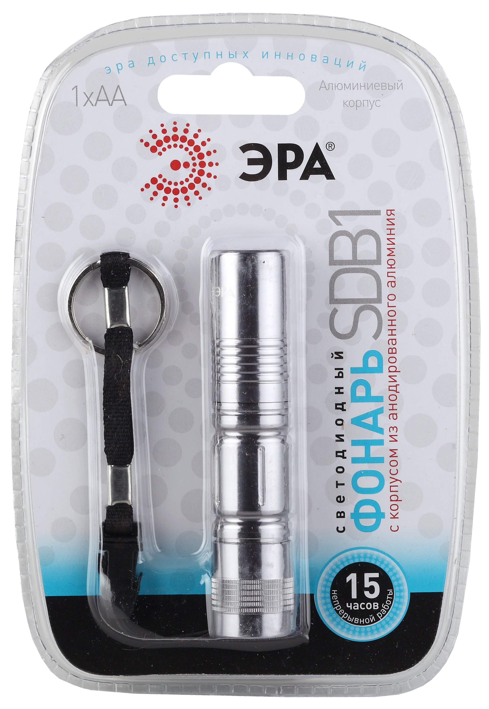 Светодиодный алюминиевый фонарь на батарейках. Простой и надёжный фонарь для повседневного использования. Компактный фонарь оснащён качественным ярким светодиодом мощностью 0,5 Вт, который светит белым светом. Фонарь способен на 15 часов непрерывной работы, а дальность луча составляет 60 метров.Универсальный фонарь комплектуется ремешком, чтобы было удобно держать в руке или прицепить к рюкзаку или ручке сумки. Мощность фонарика вполне достаточна для бытовых нужд, а прочный корпус из анодированного алюминия - гарантия надёжности и долговечности. Компания ЭРА внимательно относится к качеству своей продукции, именно поэтому даже в таком простом фонарике продумана каждая мелочь. От светодиода до металлического корпуса. На ручке фонаря есть специальные противоскользящие насечки. Фонарик компактный, его удобно брать с собой. Фонарь SDB1 станет лучшим решением, если необходимо приобрести фонарик для бытового использования.