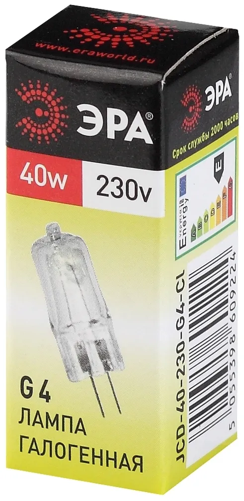 Лампочка галогенная эра g4-jcd-40w-230v-cl c0039280