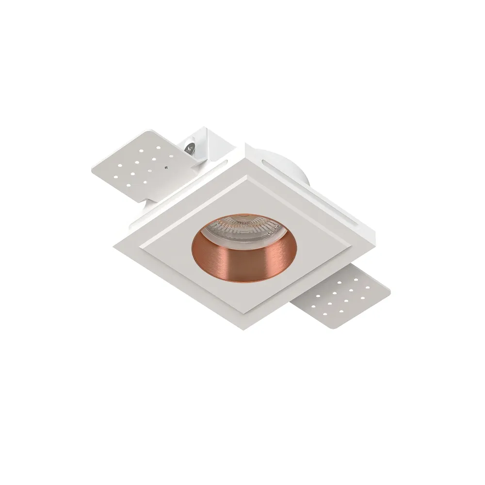 Потолочный встраиваемый гипсовый светильник со вставкой из меди для установки в потолках из гипсокартона.