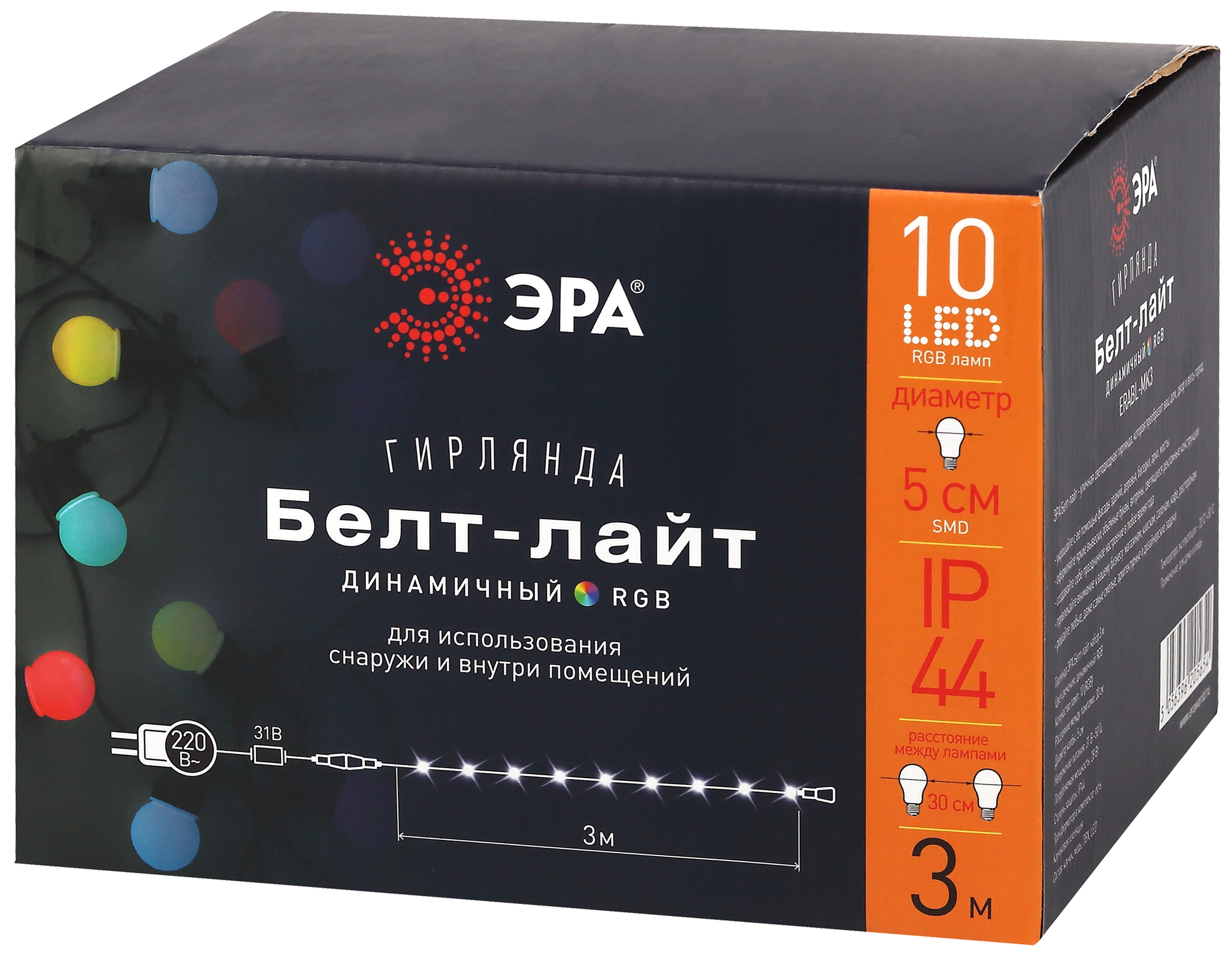 Уникальная для российского рынка гирлянда ЭРА Белт-лайт ERABL-MK3. Внутри каждой лампочки несколько RGB-светодиодов, которые светят разными цветами, плавно меняя оттенки. В многоцветной новогодней иллюминации мы привыкли видеть несколько базовых ярких цветов. Здесь же целая палитра, состоящая преимущественно из нежных пастельных оттенков. Праздничная гирлянда ЭРА "Белт-лайт" - современный высокотехнологичный аналог традиционных гирлянд-шариков. Поможет стильно и душевно украсить дом, сад или общественное пространство, вызовет приятные ностальгические эмоции, удивит качеством и удобством в использовании. Подходит для применения внутри и снаружи помещений. Колбы не из хрупкого стекла, а из устойчивого к механическим воздействиям и низким температурам пластика. Лёгкие и прочные плафоны не разобьются при транспортировке, использовании и хранении. Надёжный каучуковый провод сохраняет форму и гибкость при низких уличных температурах. Гирлянды ЭРА "Белт-лайт" можно соединять в длинные цепи - до 4 гирлянд в цепи. Заглушки и коннекторы герметичны. В каждый набор входит комплект для подключения и соединения. Создавайте праздничное настроение вместе с ЭРА!