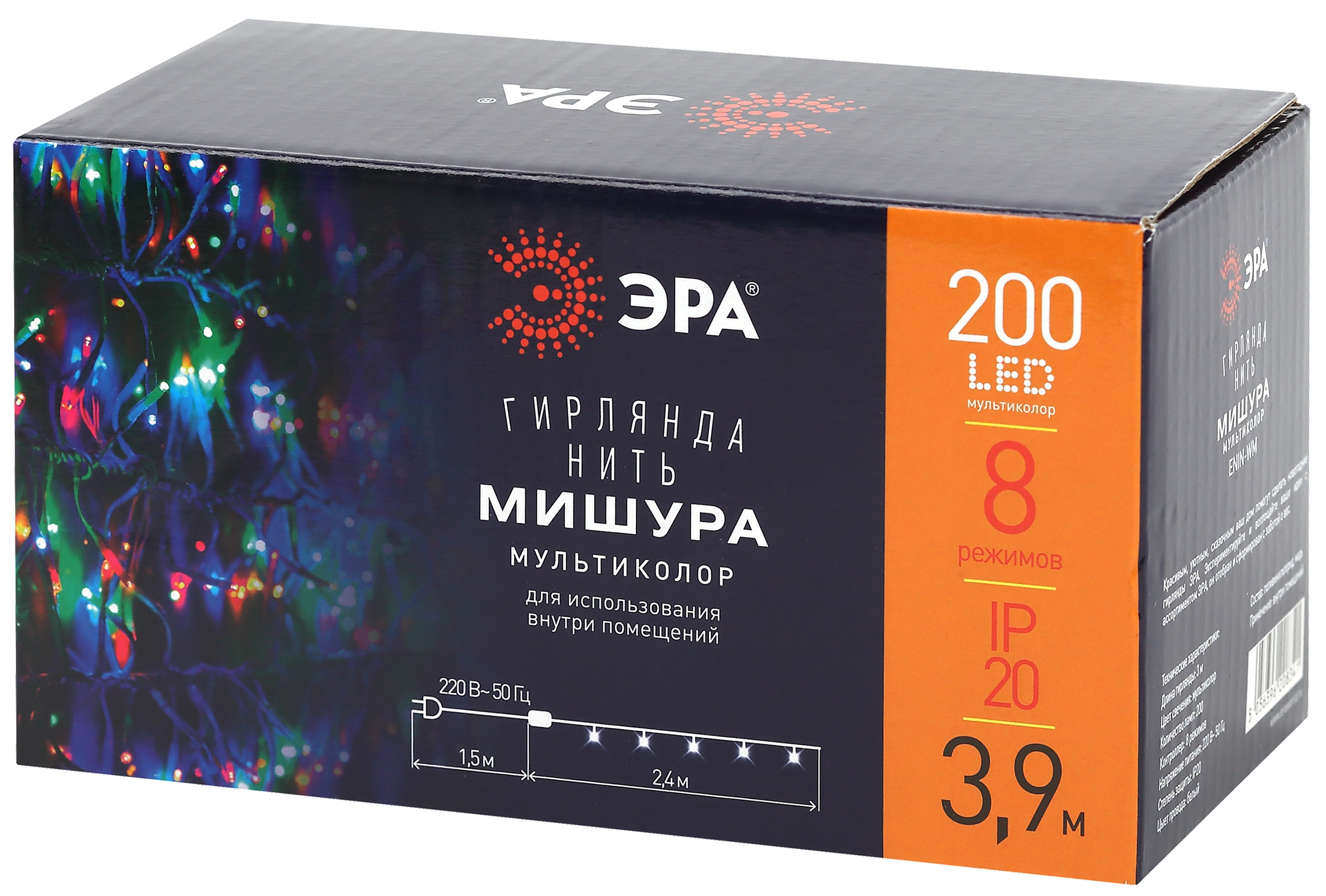 Новогодняя гирлянда-нить ЭРА ENIN - WM (арт. Б0047972) современного дизайна с миниатюрными лампочками разных оттенков. Провод белого цвета идеально подходит для зимних праздников, ассоциируясь со снегом. Такая гирлянда отлично смотрится на ёлке, создавая эффект припорошенного снегопадом праздничного дерева. Складывается впечатление, что дом или общественное пространство украшены светящейся мишурой, так как многочисленные светодиоды расположены на кончиках тонких проводов. Свет получается объёмным и "пушистым". Для высокой яркости этой гирлянде не пожалели светодиодов - их здесь 200 штук! Общая длина красивой и практичной гирлянды ЭРА - 3,9 метра. Первая лампочка - через 1,5 метра от вилки. Создавать уникальную праздничную атмосферу можно с помощью 8 разных режимов.