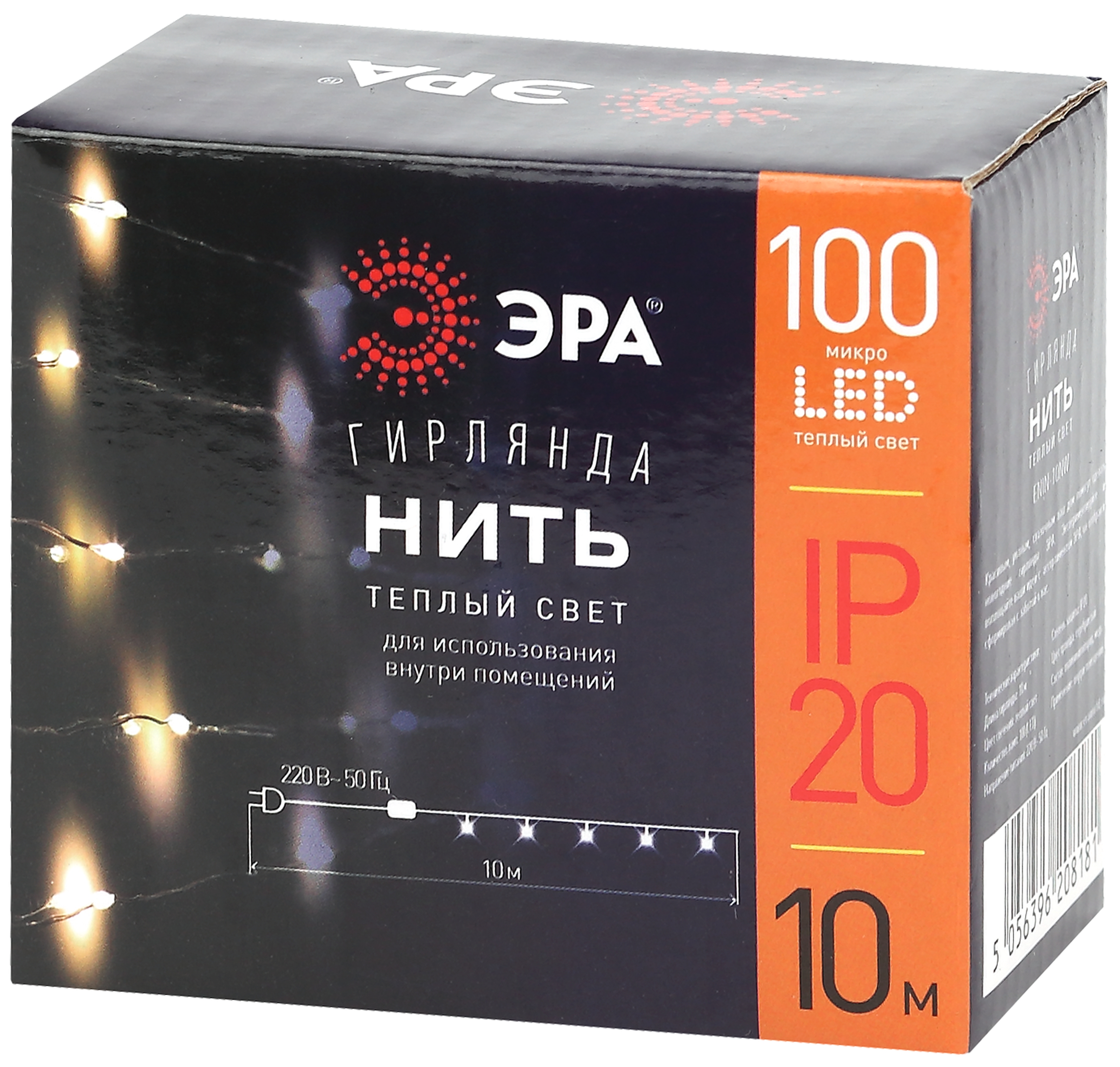 10-метровая новогодняя гирлянда ЭРА ENIN -10NW "Нить" (арт. Б0047964) со встроенными в полупрозрачный провод яркими микросветодиодами. Свет этой гирлянды - тёплый белый, он создаёт уютную праздничную атмосферу. Количество LED-элементов - 100 штук. Миниатюрные и экономичные, они красиво светят и потребляют минимум электроэнергии. Светодиоды не перегреваются даже при долгой работе без перерыва, использовать эту гирлянду безопасно и удобно. Гибкий тонкий провод даёт возможность создавать световые композиции и светящиеся надписи. С помощью гирлянды ЭРА "Нить" можно красиво и необычно украсить дом или общественное пространство. Аналогичная гирлянда мультиколор: арт. Б0047965.