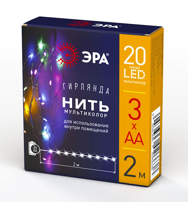 Эта портативная новогодняя гирлянда практически не заметна днём, зато эффектно светится в темноте. Яркая удобная гирлянда новогодняя ЭРА "Нить" (арт. Б0041983) состоит из прочных тонких проводов с размещёнными на них микросветодиодами. LED-элементы красиво светятся разными оттенками. Гирлянда работает от 3 пальчиковых батареек. На длине в 2 метра располагаются 20 маленьких ламп, напоминающих светлячков. Так создаётся неповторимая волшебная атмосфера праздника. Гибкость этой гирлянды позволяет использовать её для самых смелых идей новогодней иллюминации. С помощью гирлянды ЭРА "Нить", к примеру, можно сформировать светящиеся цифры наступающего года или украсить наряд для вечеринки.
