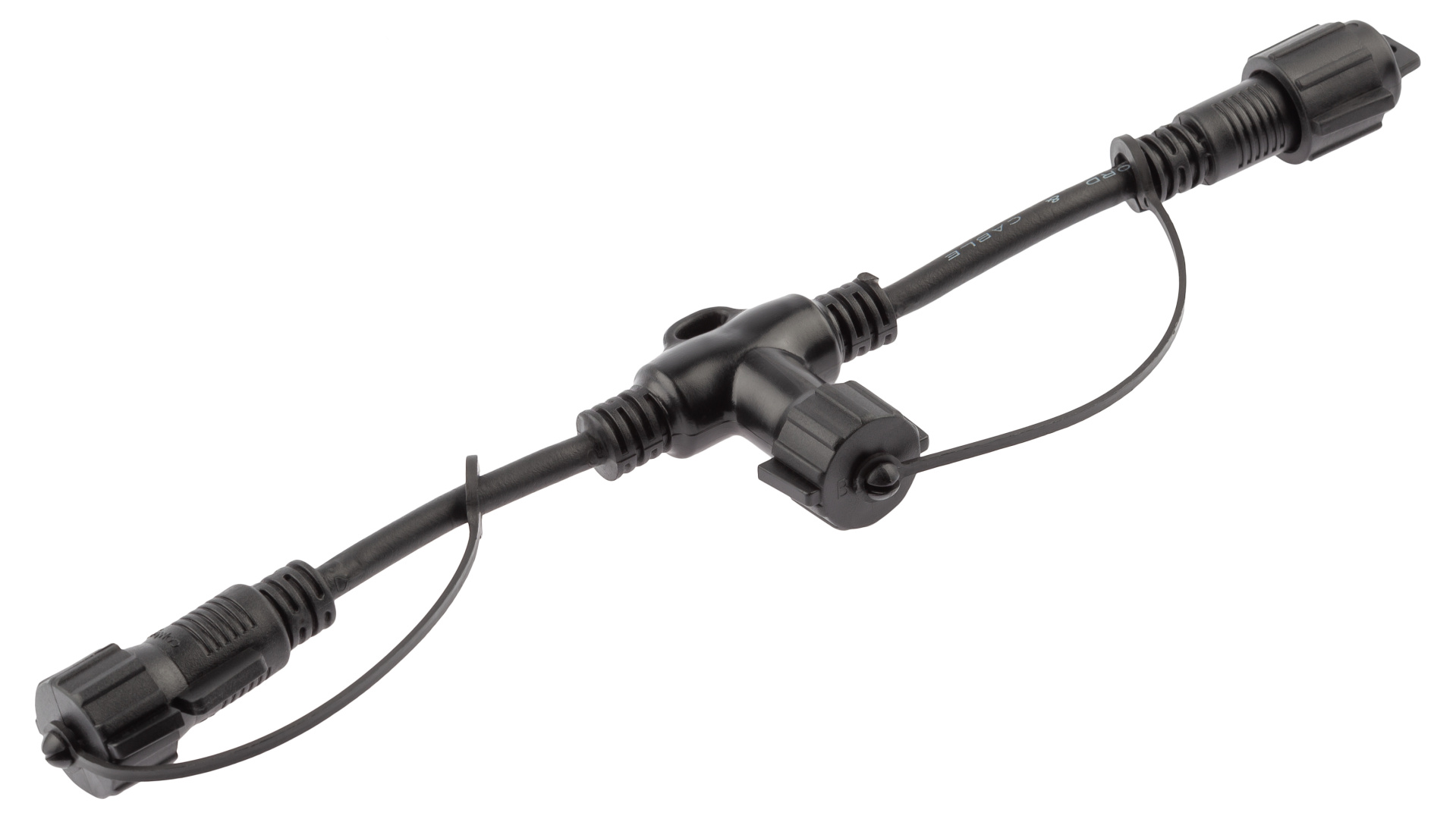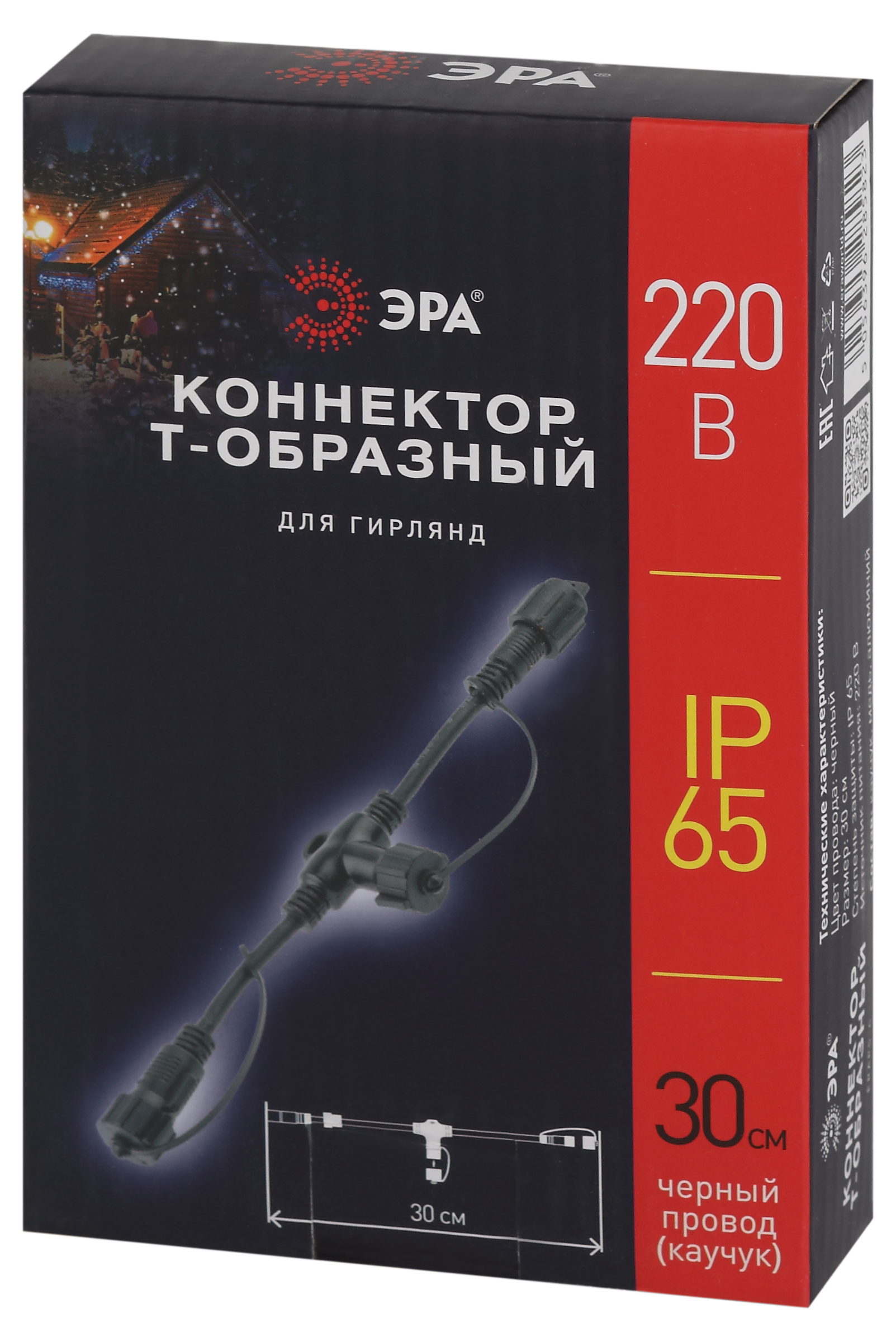 Профессиональный T-образный коннектор ЭРА ERAPS-C для подключения уличных гирлянд при создании масштабной новогодней иллюминации, актуальной для декорирования загородных домов, коттеджей, фасадов зданий, муниципальных объектов, торговых центров, скверов, парков, улиц, уличных веранд кафе и ресторанов, зимних городков, новогодних ярмарок и площадей. Т-образный коннектор для создания профессиональных новогодних инсталляций изготовлен из прочного морозостойкого каучука. Совместим с профессиональными гирляндами IP65 большинства производителей. Обеспечивает высокую защиту соединений от влаги и пыли. Дает возможность создавать длинные световые цепи и могут применяться в экстремальных погодных условиях, таких как ветер или сильные осадки.