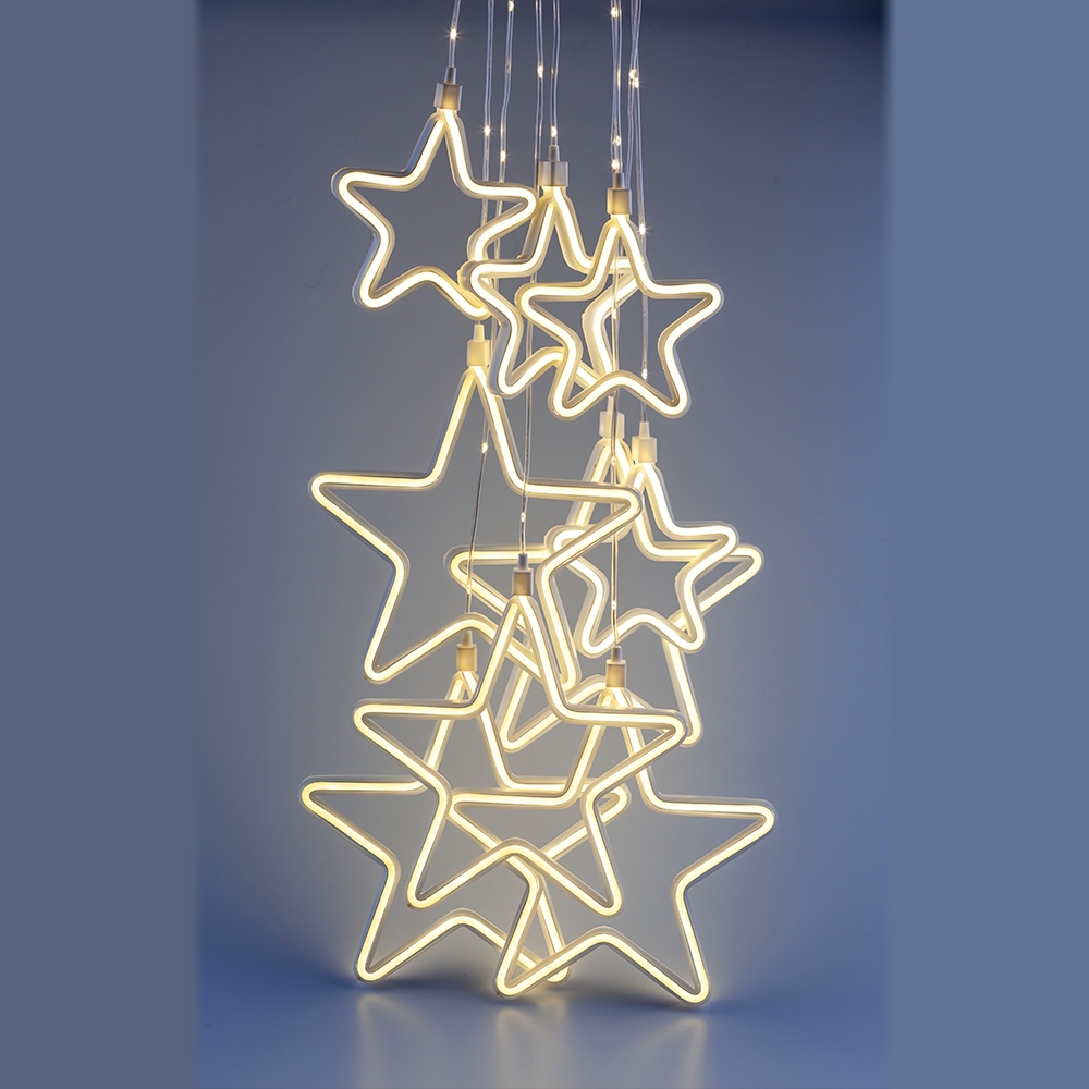 Светодиодная праздничная гирлянда ЭРА "Неоновые звезды" 2.4х0.8 м ЕGNIG-ST (арт. Б0051877) создаст дома теплую атмосферу к Новому году и Рождеству! Гирлянда-занавес особенно красиво будет смотреться на окнах. Данная модель состоит из 180 светодиодов с теплым белым светом, фигурки выполнены в форме звезд разного размера. Электрогирлянда дождик имеет незаметные полупрозрачные провода, длина кабеля составляет 1.5 метра, класс защиты IP20 (использование внутри помещений), питание 220 В. Гирлянда LED ЭРА прослужит много лет, станет универсальным украшением гостиной, кухни, спальни или другого пространства, а еще это необычный подарок для Ваших близких! Новогодний декор всегда создает ощущение праздника!